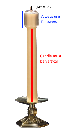 - Put a follower of the right size on your candle. This ensures the candle burns properly. Seat the follower on the candle and make sure it is level.