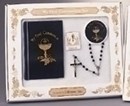 4pc Girl Communion Set. Includes rosary with box, prayer book, pin and folder. 6"H