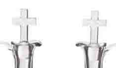 Elegant 7.25" hand blown glass cruets. Hold approximately 6 oz. They are hand crafted with durable handles and well fitting cross shaped stoppers. All hand made glassware may have slight irregularities as each piece is truly unique.