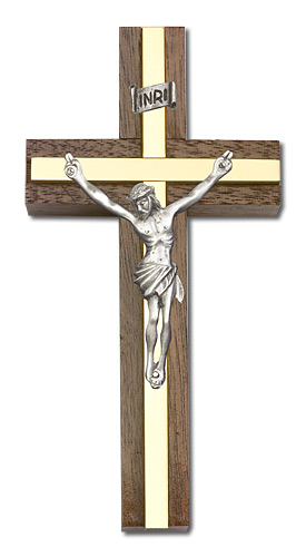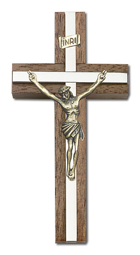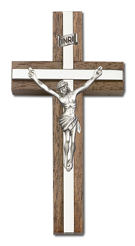 4 inch Crucifix, Walnut w/ Polished inlay