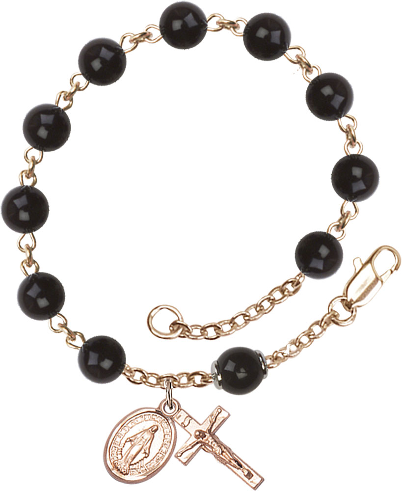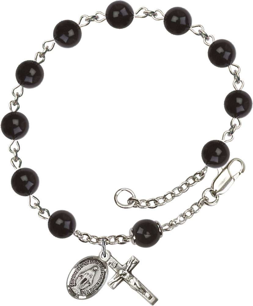 Rosary Bracelet features 6mm Black 'Precious Stone' beads. The Crucifix measures 5/8 x 1/4.