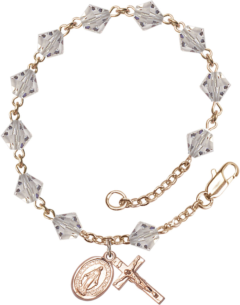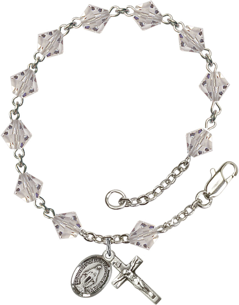 Rosary Bracelet features 6mm Crystal Swarovski Rundell beads. The Crucifix measures 7/8 x 3/8.