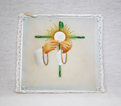 Beautiful gold Latin Cross embroidery. 100% Cotton Mass Linen set. Includes a 7" x 7" chalice pall with a removeable insert, a 20" x 20" corporal and a 10.5"  x 20.5" purificator.  Includes a 10.75" x 21" unembroidered finger towel.