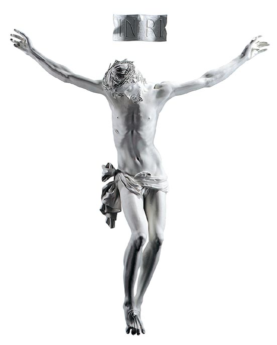 Our most popular corpus, hand carved in lindenwood and hand painted in traditional colors, is available in a 2', 3', 4' 5' and 6'. Wood crosses sold separately. This model is also available in fiberglass in the 4', 5' and 6' models. The following options can be selected upon ordering; painted in traditional colors, stained, white marble, bronze, and silver finishes. Monotone finishes include a discount. This product is FOB Italy and typically arrives in 8-12 weeks. For more information please contact us. Shown in traditional colors (wood) and in white marble finish (fiberglass). Price shown reflects smallest wood model.