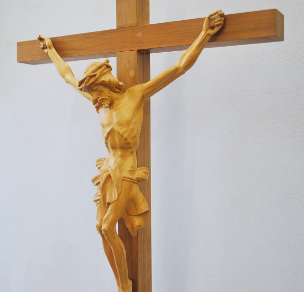 This is a previously owned 25" woodcarved altar crucifix. This item is in nice condition.