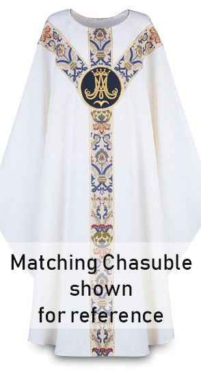 Custom green Deacon stole especially prepared for Tom Murray. Executed in dupion fabric. Finished stole will match banding of the chasuble pictured. Please allow 4-5 weeks for delivery.