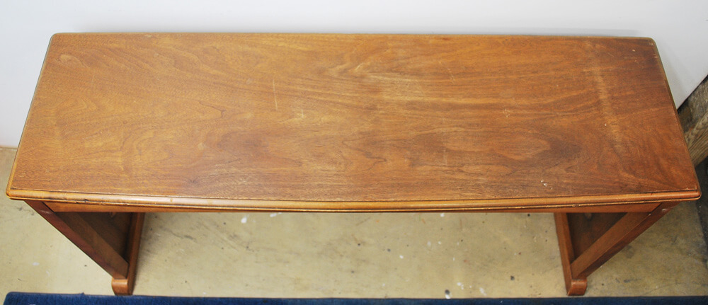 This is a previously used wood piano bench. It is 47" long x 23 1/2" tall x 15" deep. It is in good usable condition.