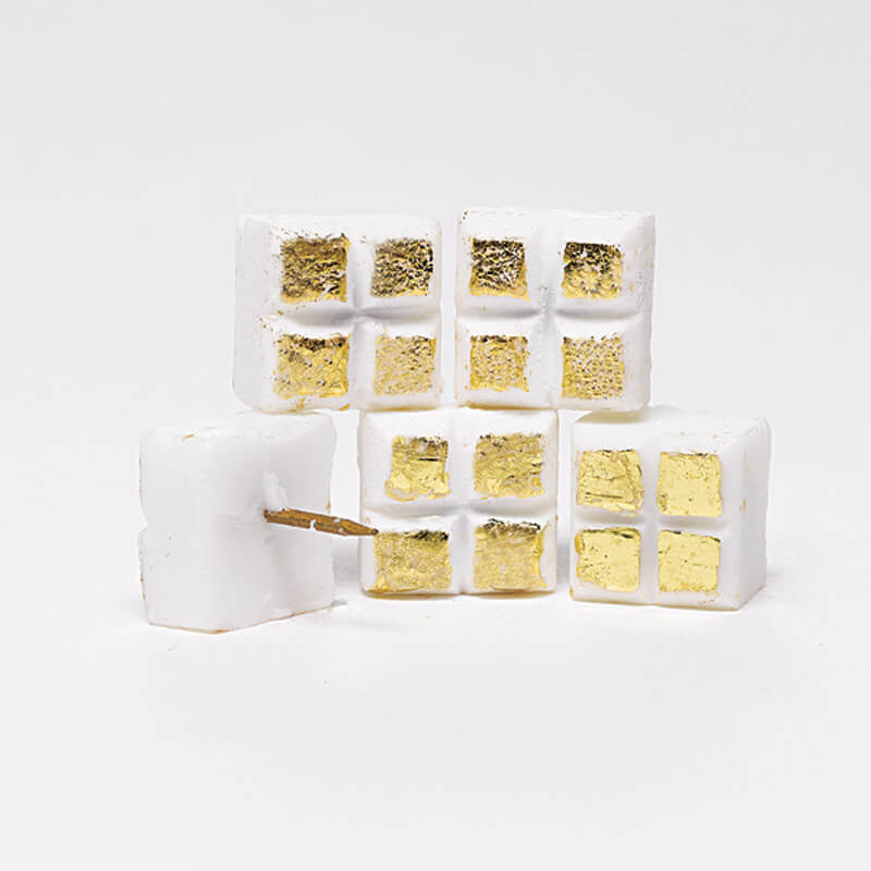 This gold and white design was inspired by several passages from Scripture, emphasizing the great light and beauty of God's saving love.