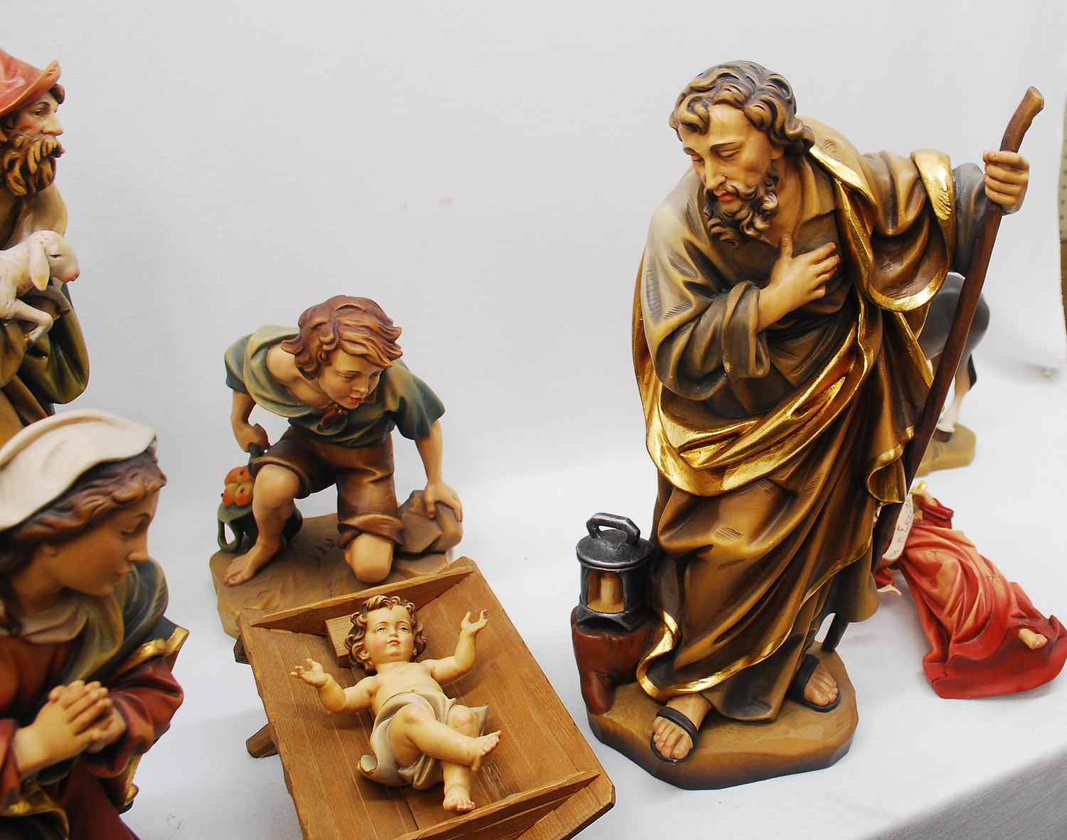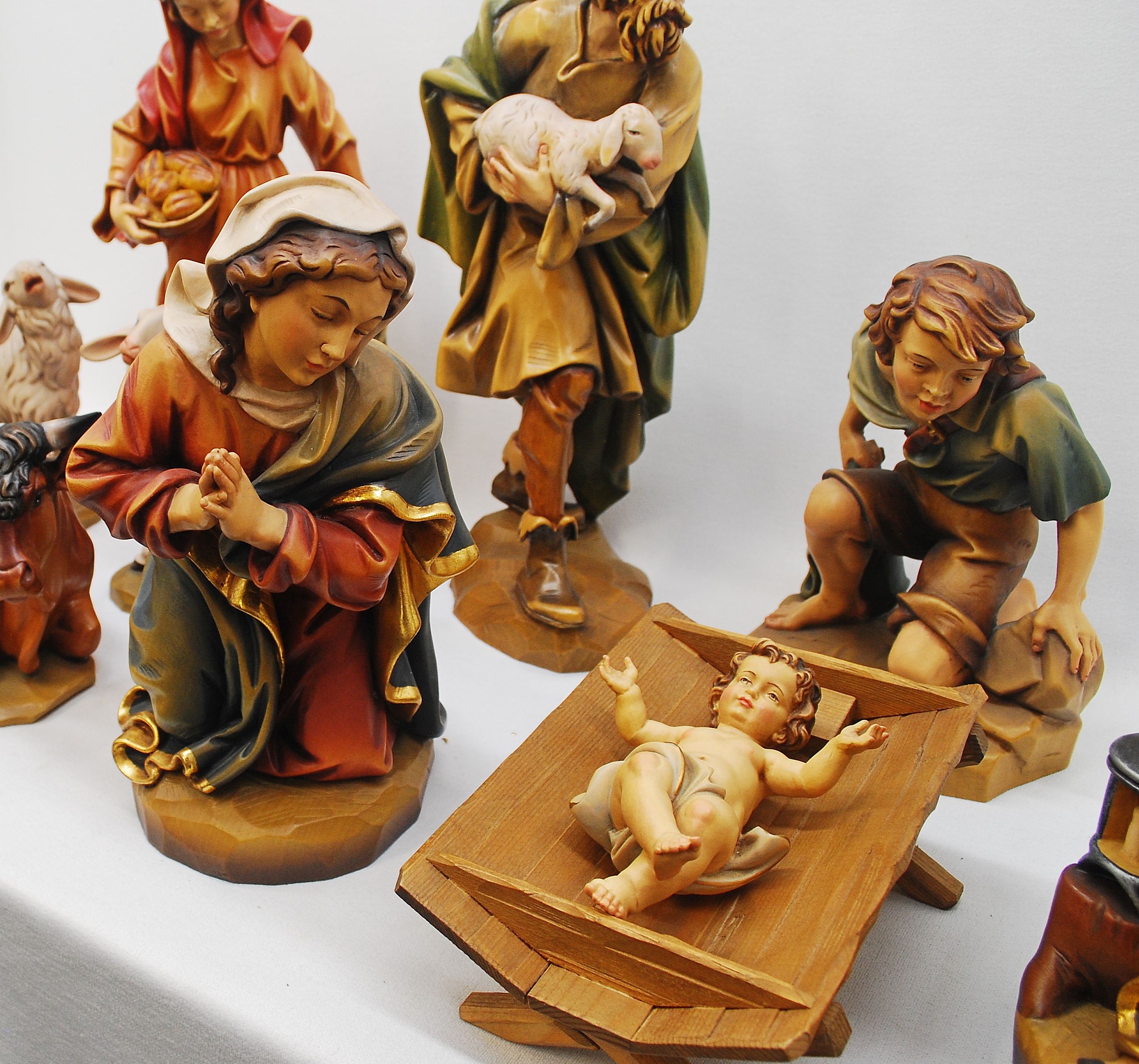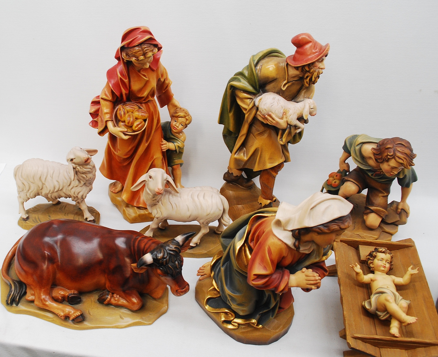 This is a previously owned 12pc woodcarved nativity set. It is a 16" set and is in excellent condition. If you are interested in adding the 3 wisemen, we can get a quote for adding those 3 statues. Please let us know if would like a quote.