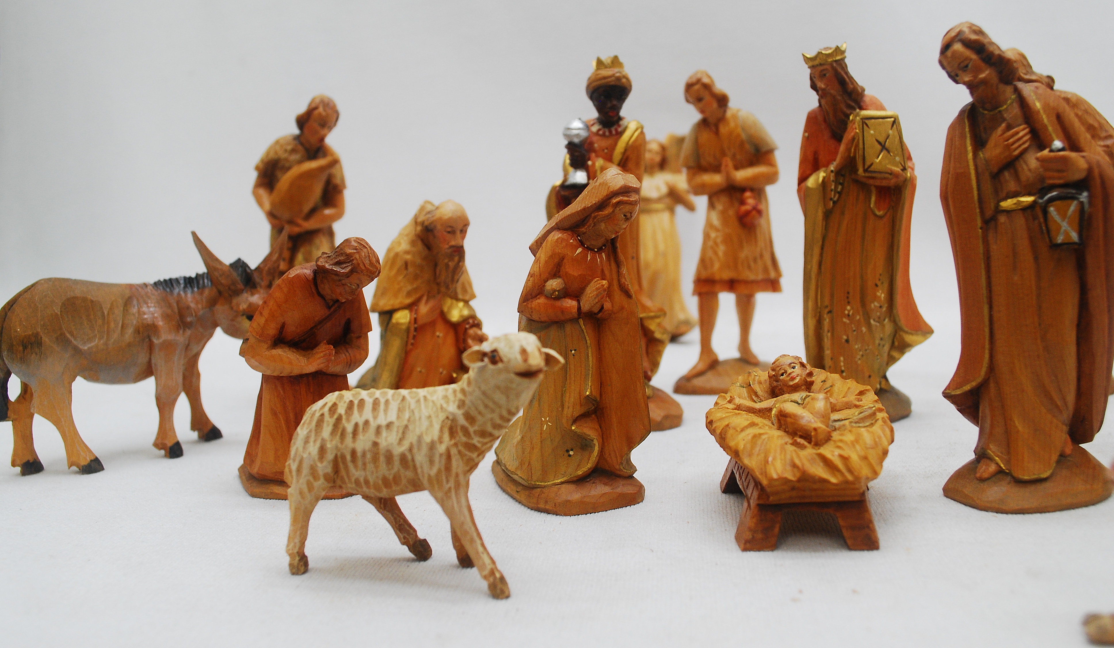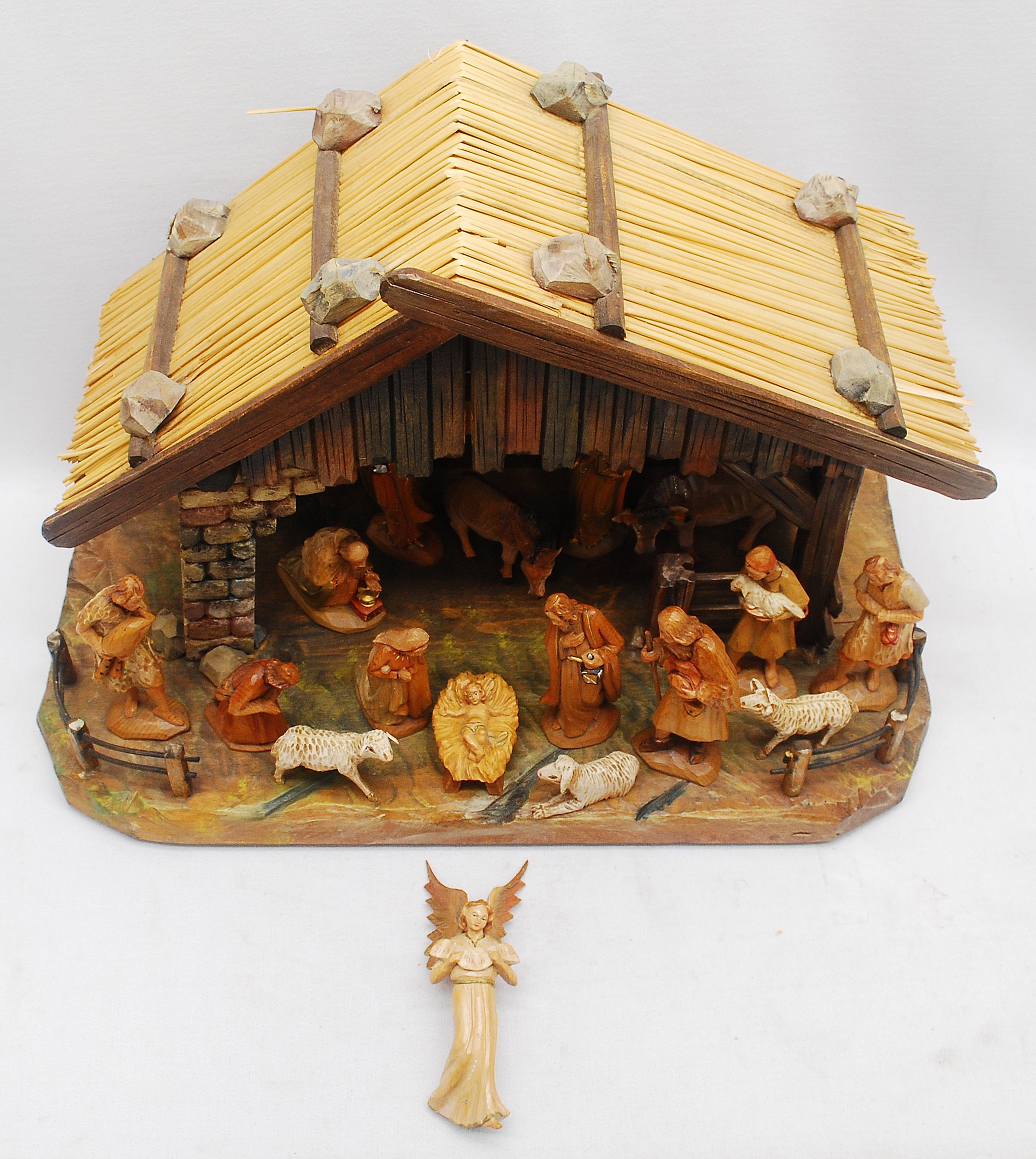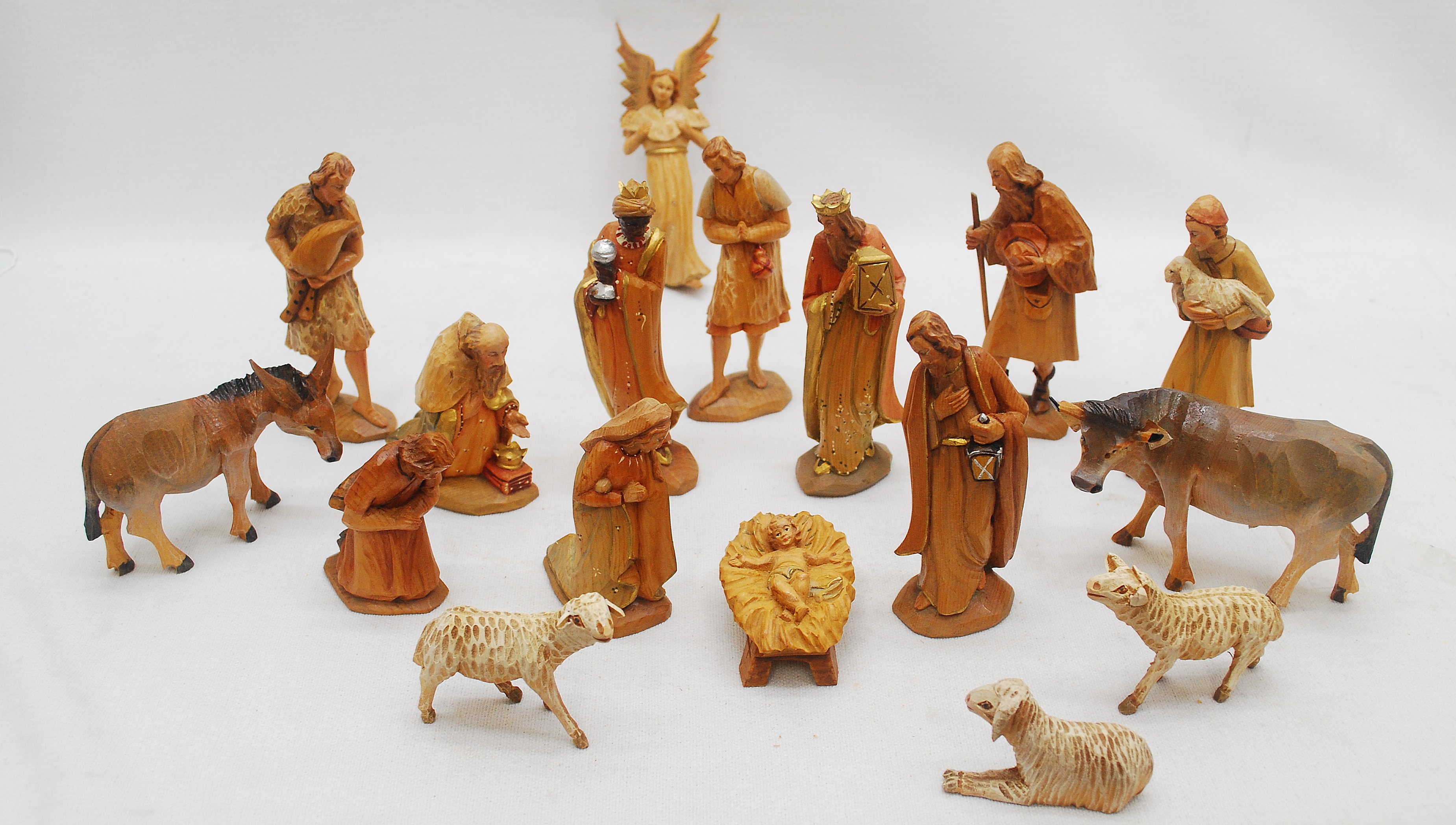 This is a previously owned 19-piece woodcarved nativity set. This item measures 5" tall and is in nice condition.
