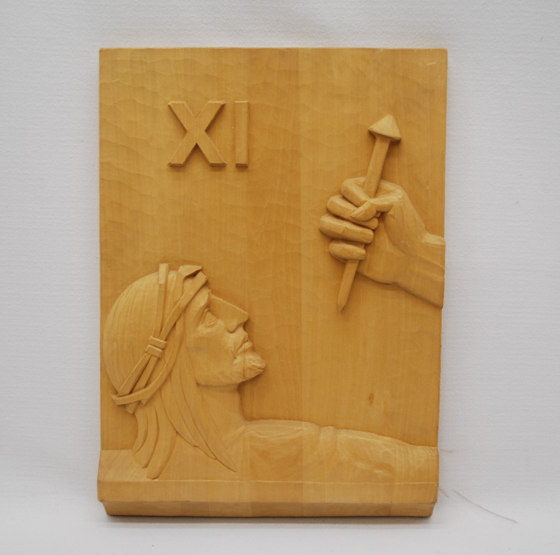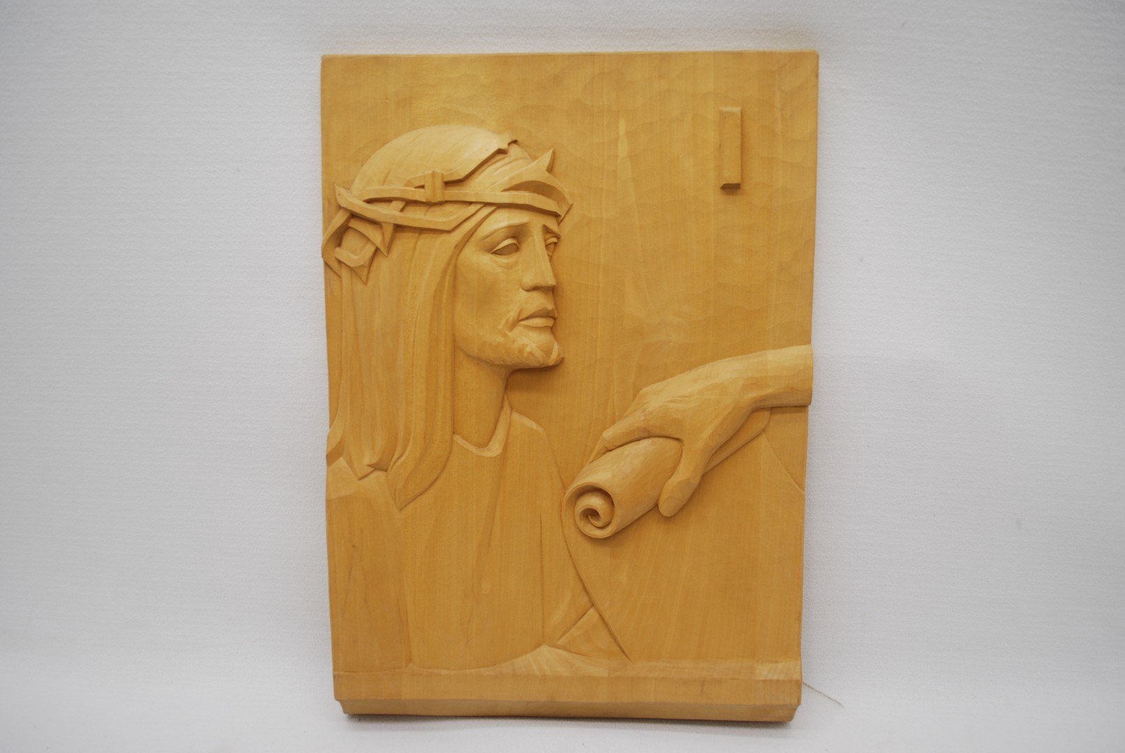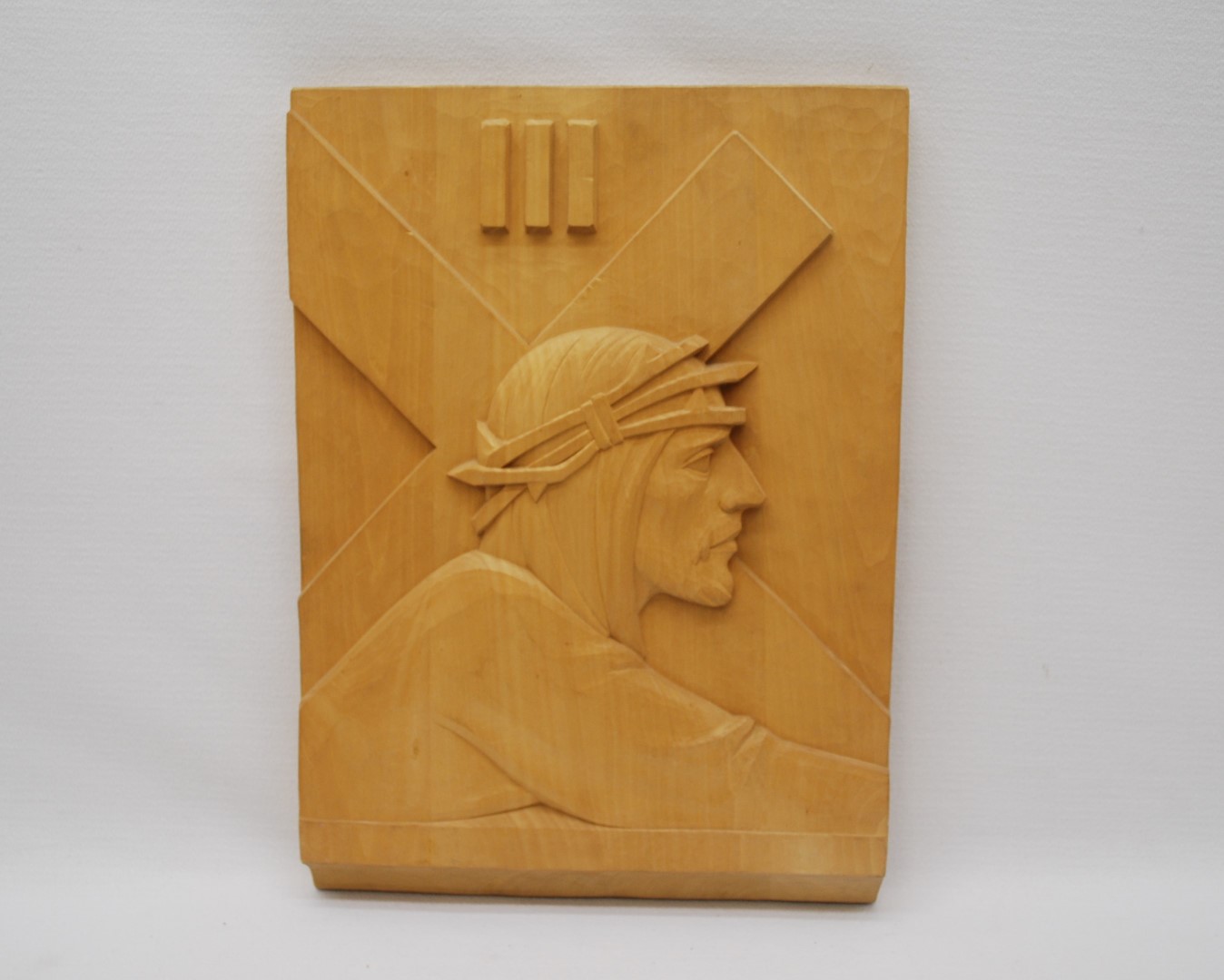 This is a previously used set of 14 15-3/4" x 11-1/4" Lindenwood Carved Wall Mount Stations of the Cross in a Natural Finish. With this set comes 14 24" x 19-1/2" x 3-1/2" hardwood Shelf Mounts. They come with crosses as well.These items are in great condition, and are ready to be used.