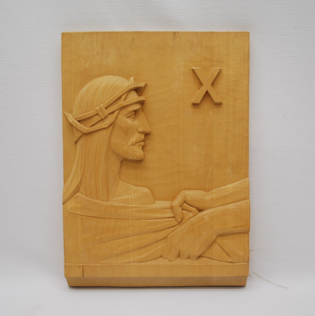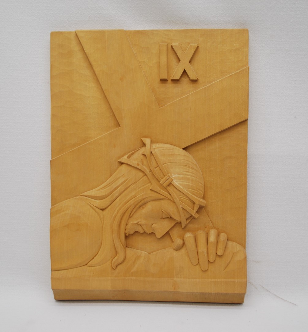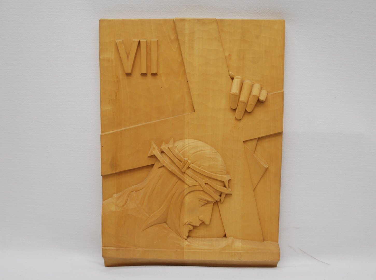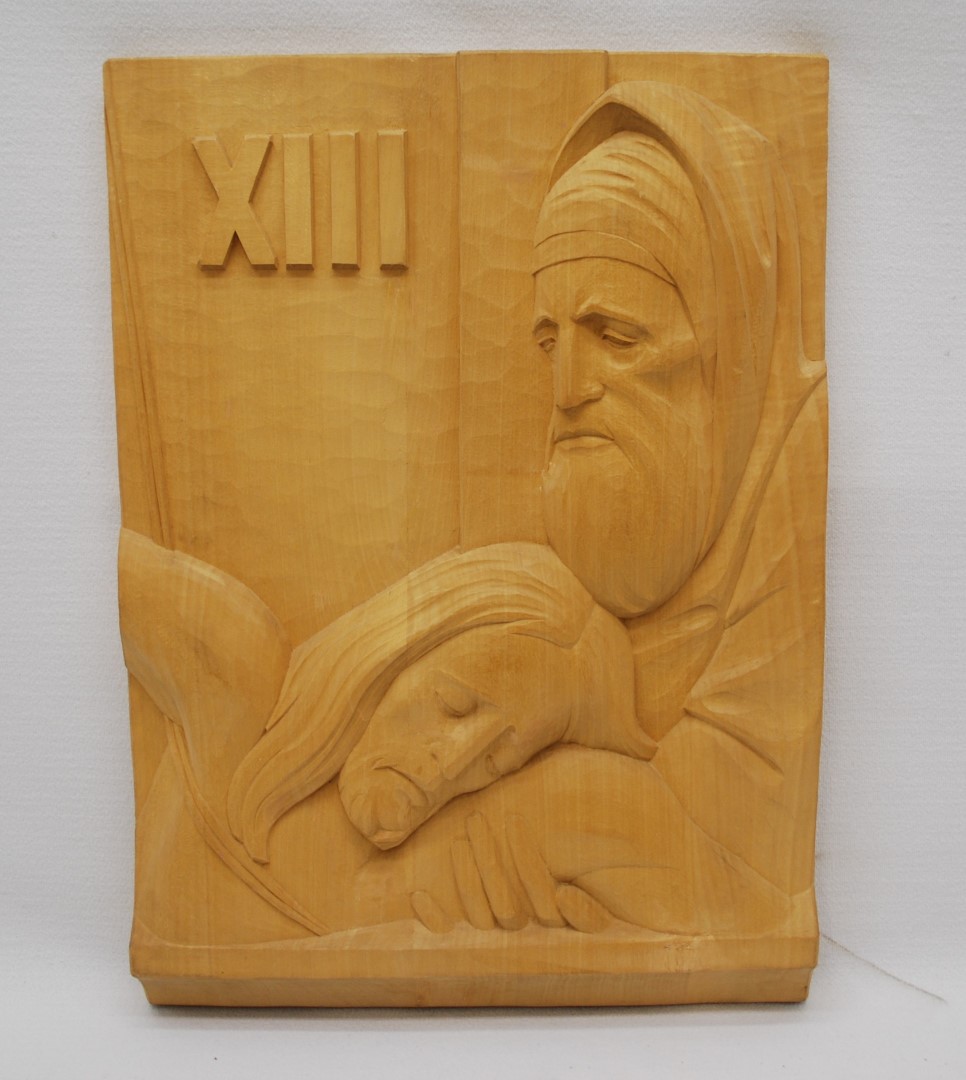 This is a previously used set of 14 15-3/4" x 11-1/4" Lindenwood Carved Wall Mount Stations of the Cross in a Natural Finish. With this set comes 14 24" x 19-1/2" x 3-1/2" hardwood Shelf Mounts. They come with crosses as well.These items are in great condition, and are ready to be used.