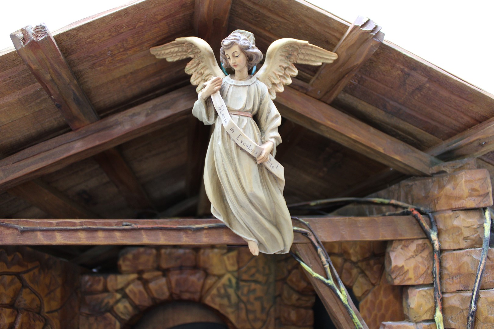 This is a previously owned 8" tall 24 Piece ANRI Hand Carved Nativity Set - made entirely in Italy. 4 pieces are signed by Ulrich Bernardi. This set comes with a delightful stable, with a working light and wind-up music box feature that plays multiple Christmas Classics.