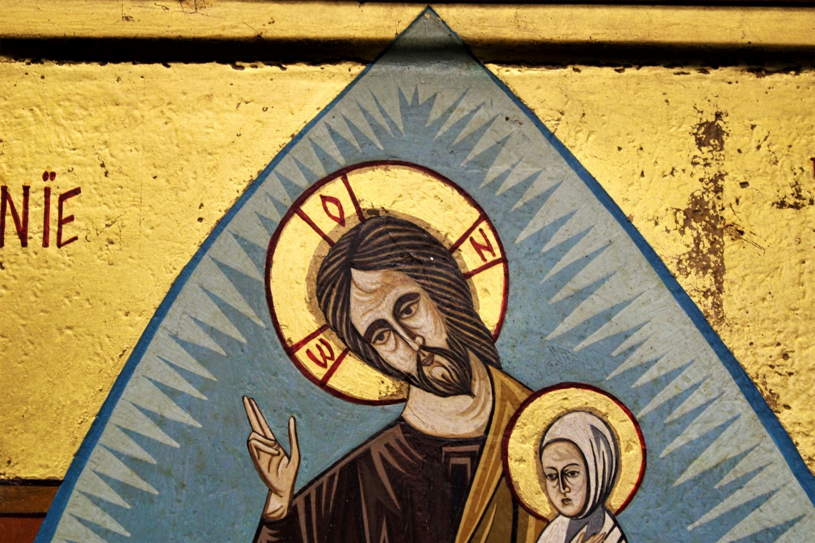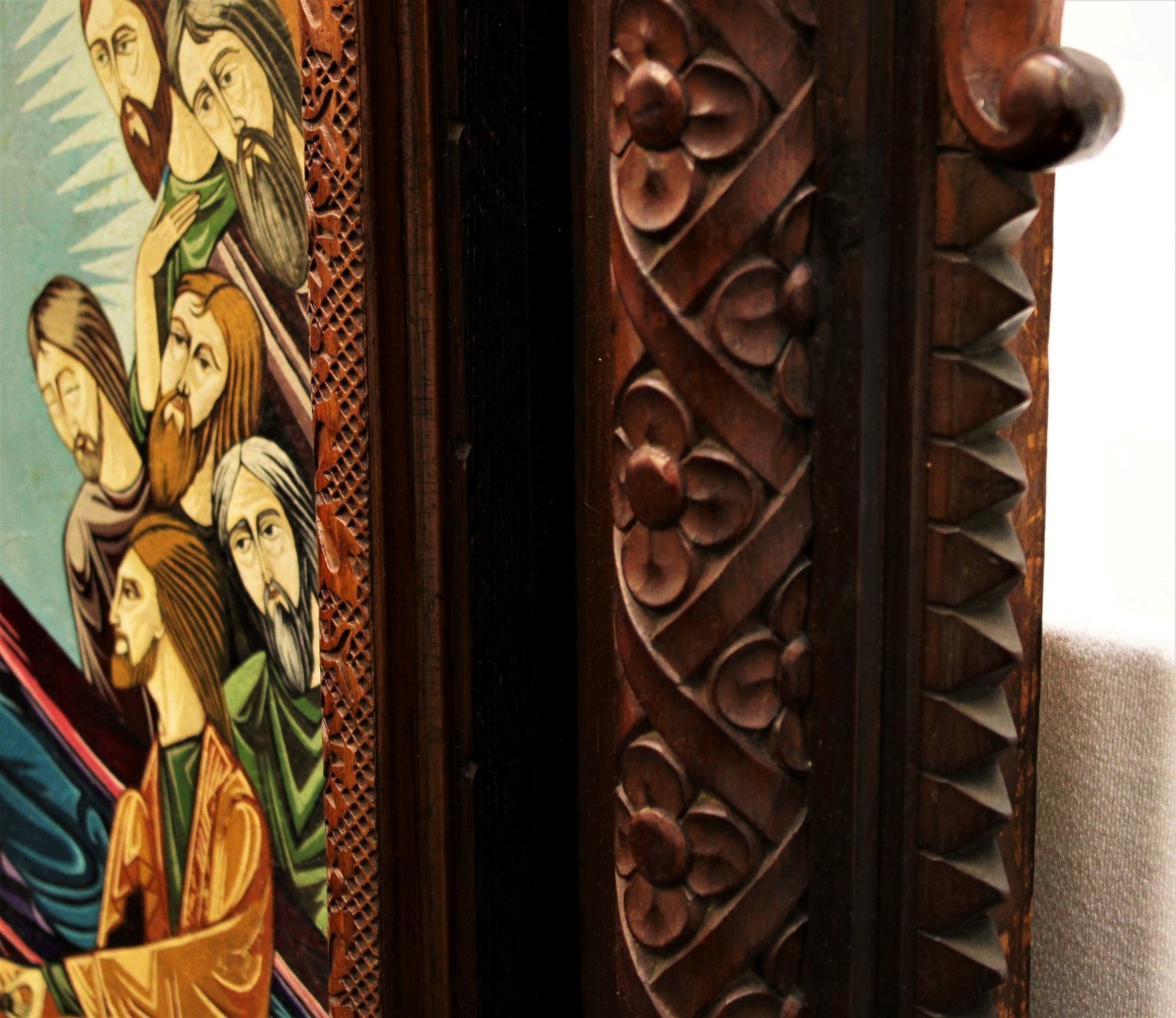71" x 39" Original Painting of Icon in Large ornate Hand Carved Wooden Frame - Signed and Dated to 1925