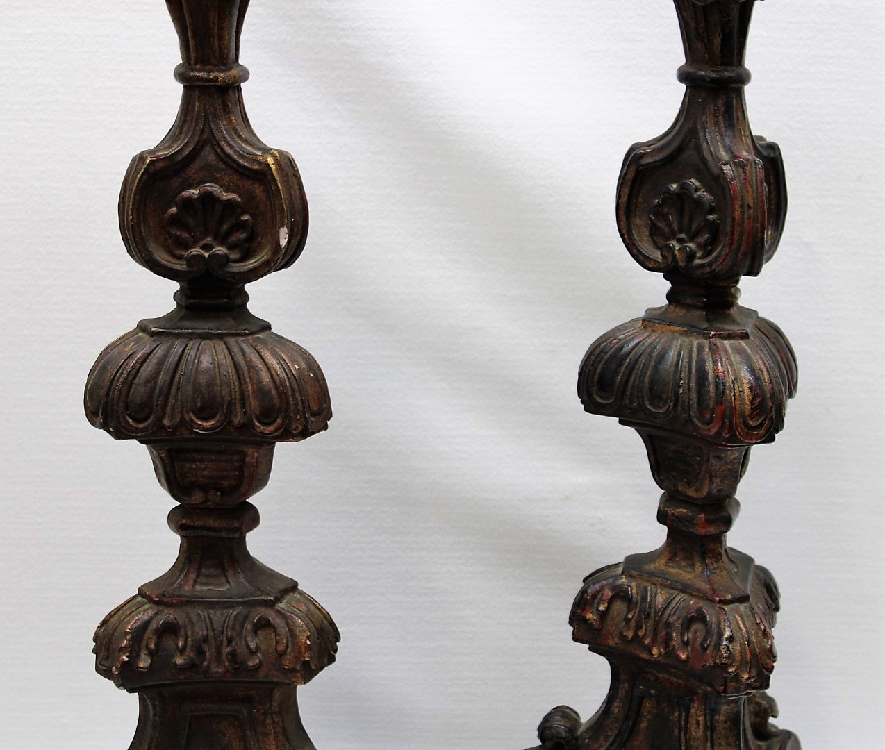 PAIR 23" Ornate Metal Candlesticks Trifoot Base