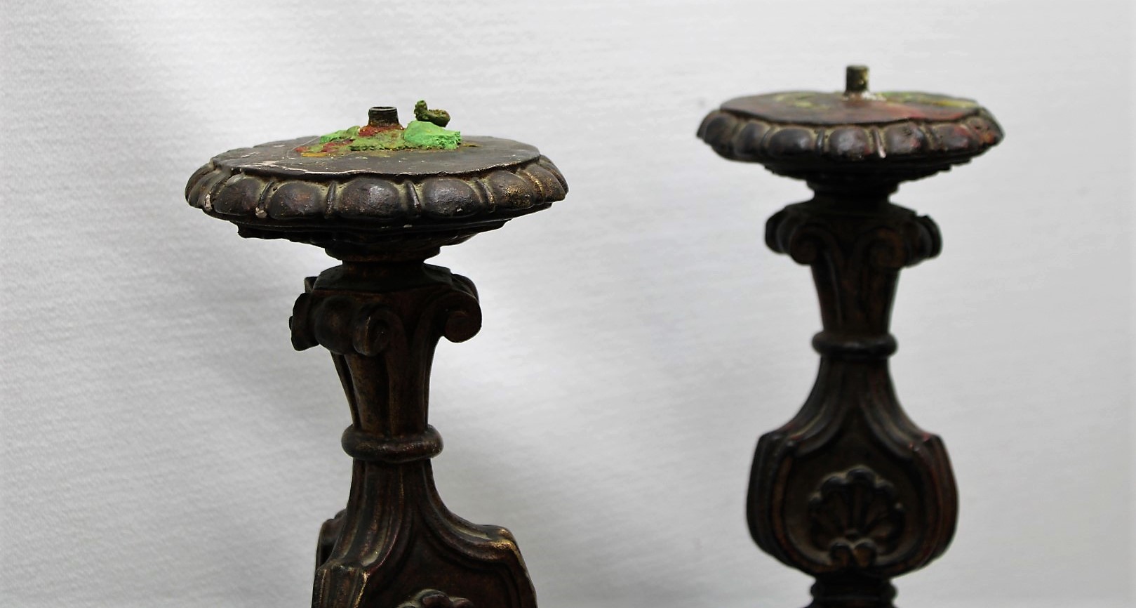 This is a previously used pair of 23" tall Ornate Metal Candlesticks with beautifully crafted Trifoot Bases.