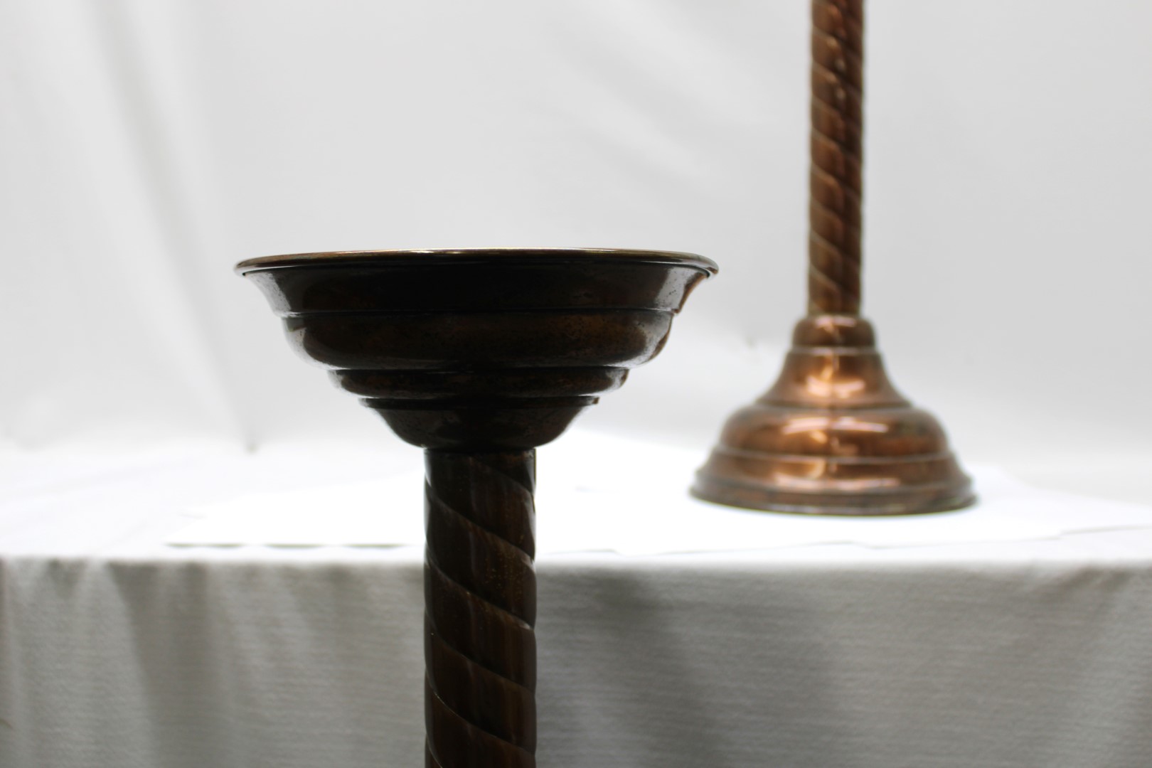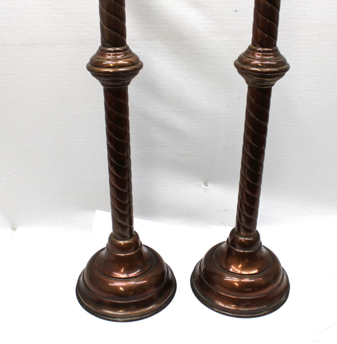 These are previously used brass spiral candlesticks. They are 36" tall and are in good usable condition. This item can be used as is or we can have it refinished for you. Quotes for refinishing are available upon request.