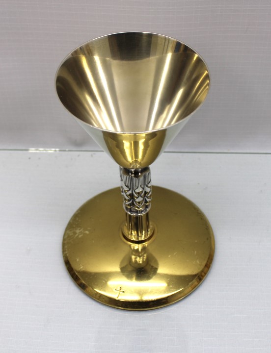 ***Cleaned and Polished 06/18/2025*** This is a previously used sterling cup chalice. It is 8" tall and the cup is made out of sterling silver with a wheat design on the center node. This item is in good condition.