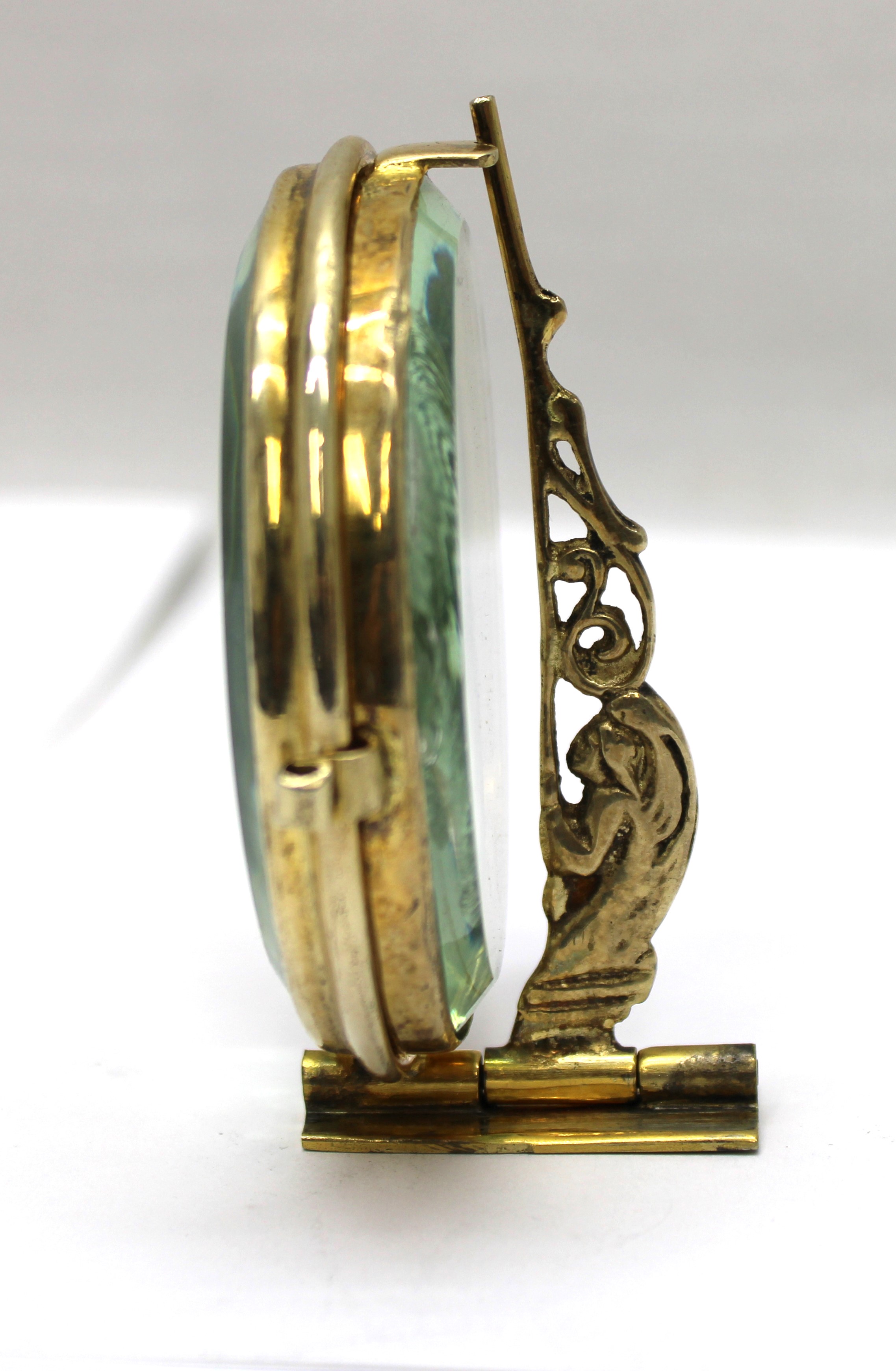 This is a previously used sterling silver luna. One side of glass is chipped, but still in good, usable condition.
