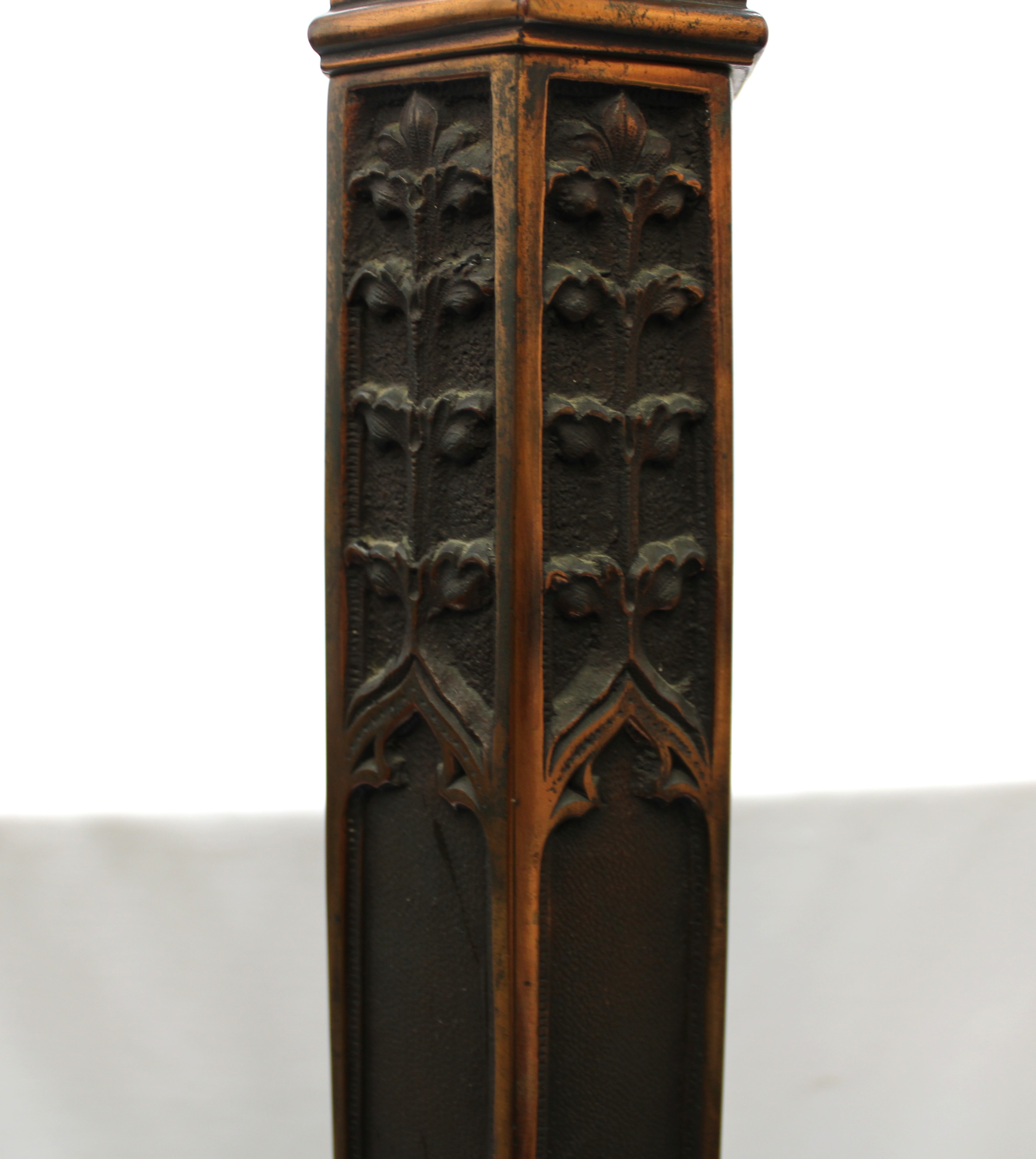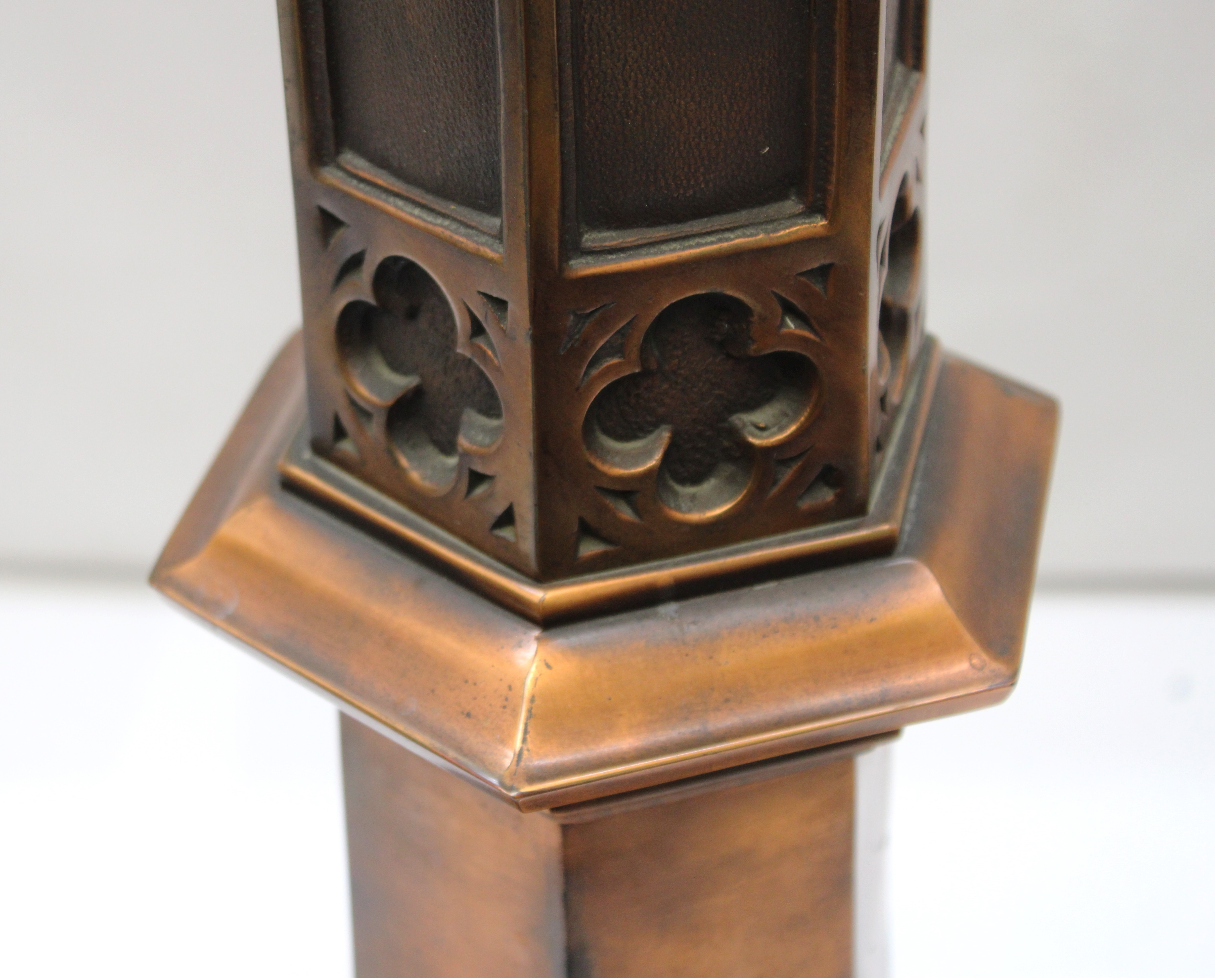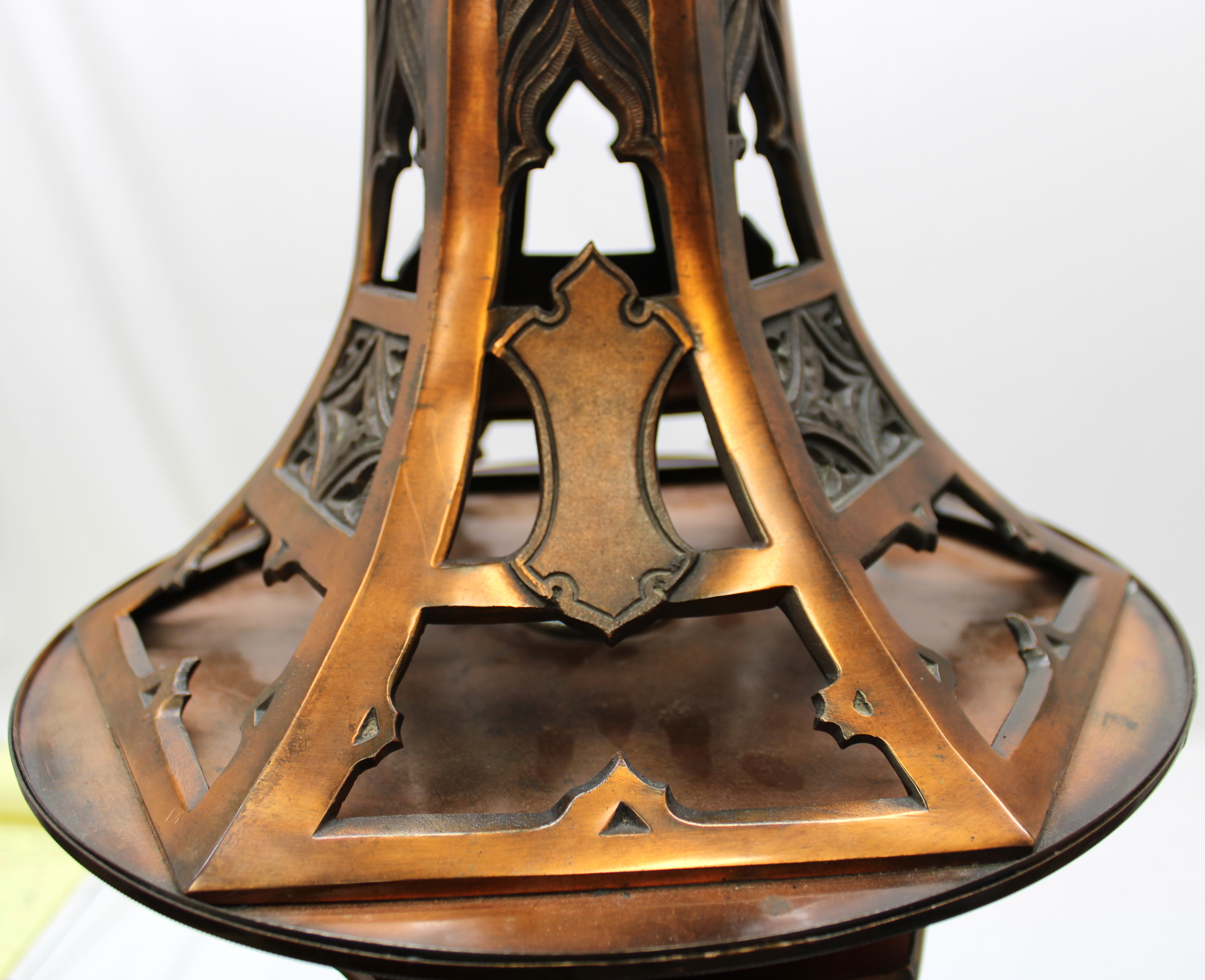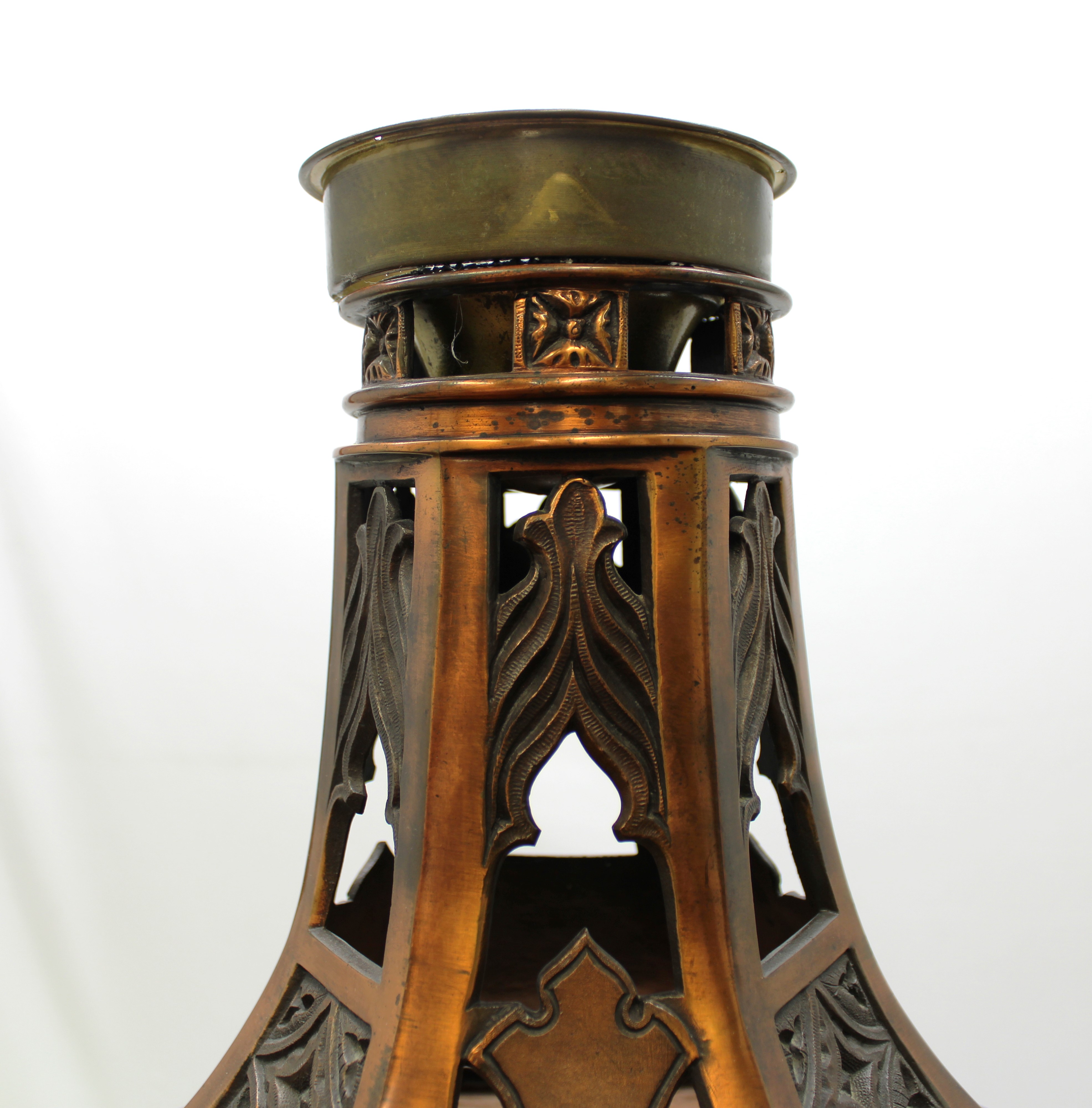This is a previously used standing sanctuary light made of copper. This stand is 61" tall has some nice design on the shaft.