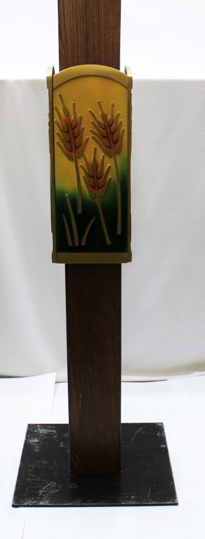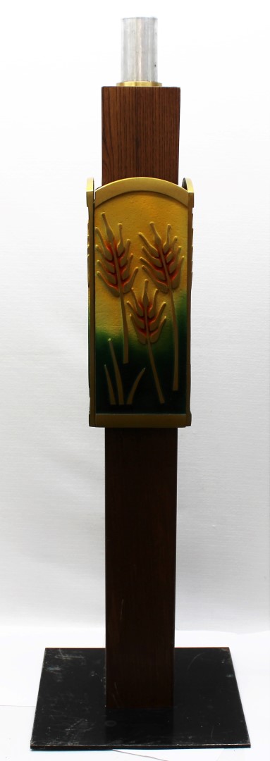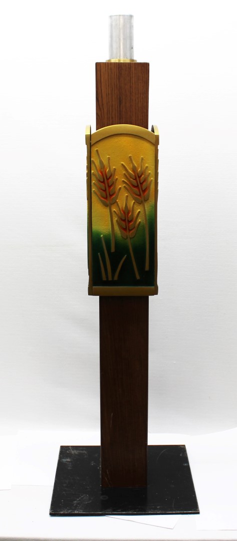 36" Wooden Processional/Paschal Stand w/ Wheat Center & Oil Candle