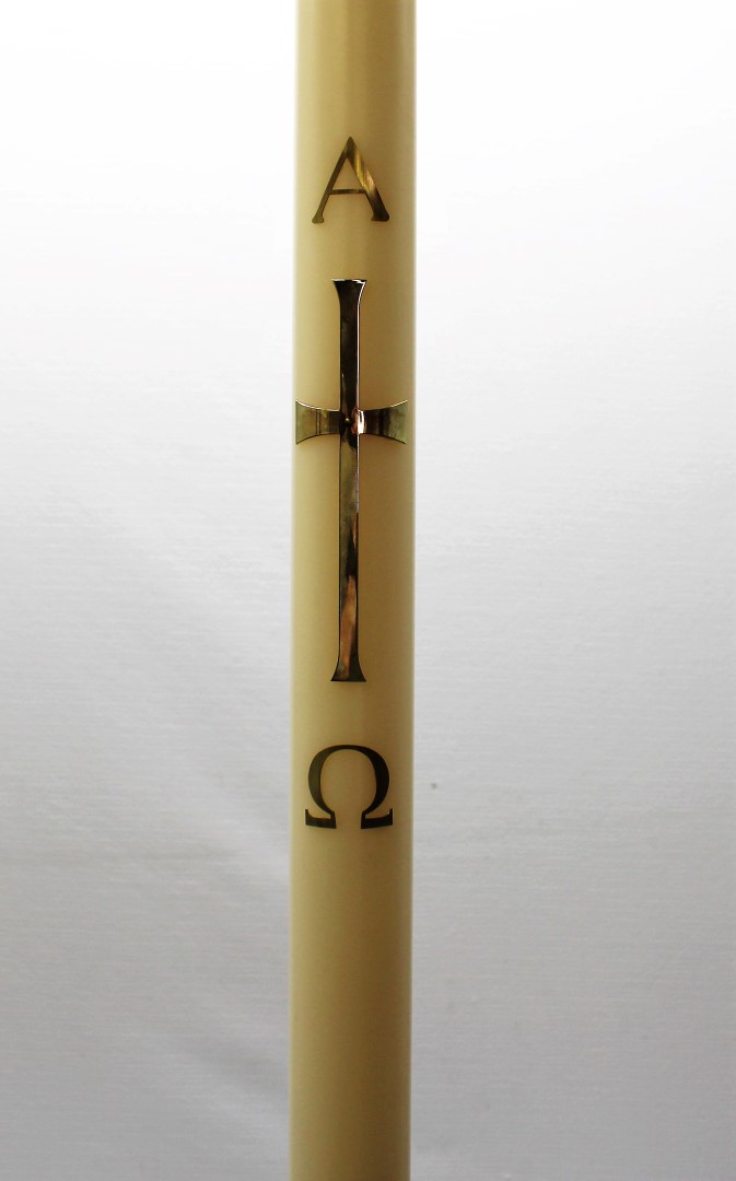 This is a previously owned processional/paschal candle stand with a wooden wheat center and oil paschal shell included. Oil Candle shell is 2" x 36". This item would also be a base for a processional cross/crucifix (NOT INCLUDED).