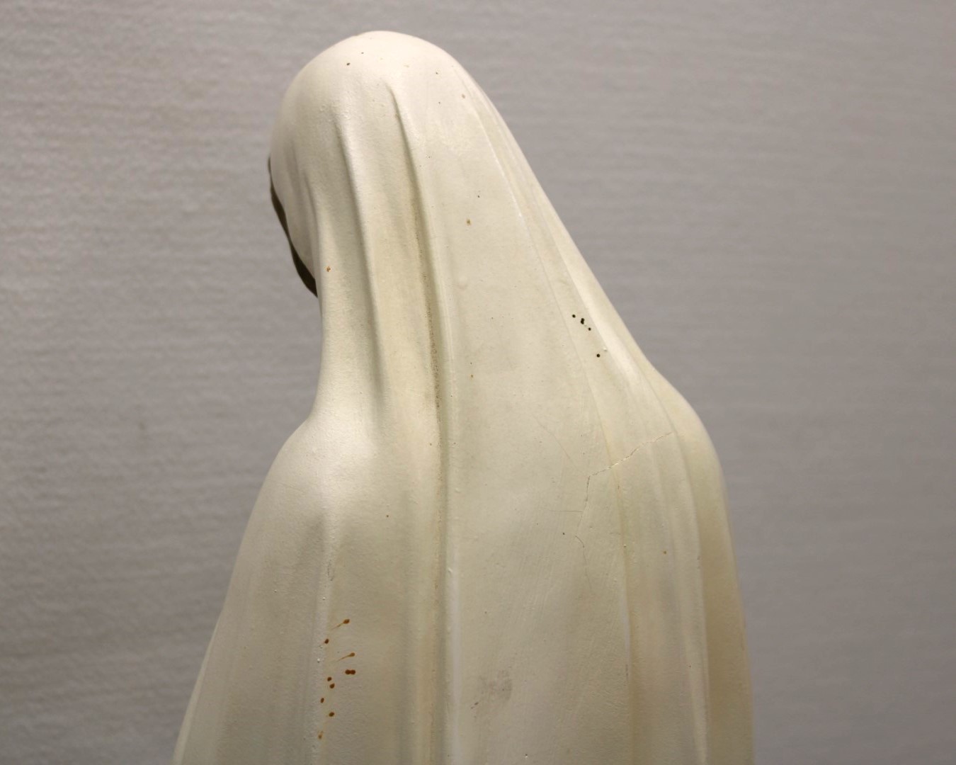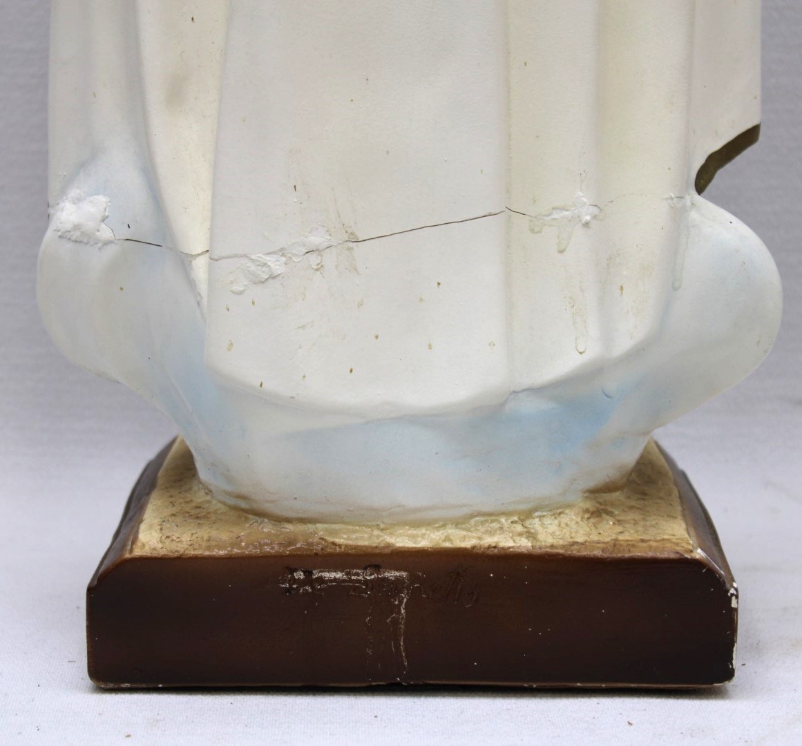 This is a previously owned 27" Our Lady of Fatima. This piece is made of plaster and is in good condition.