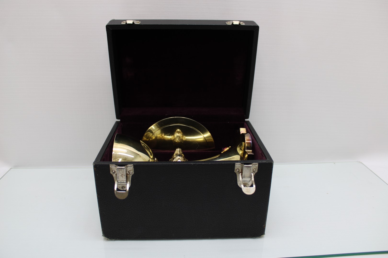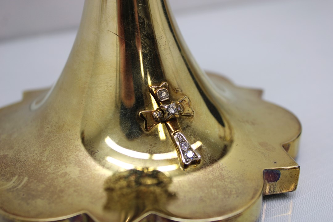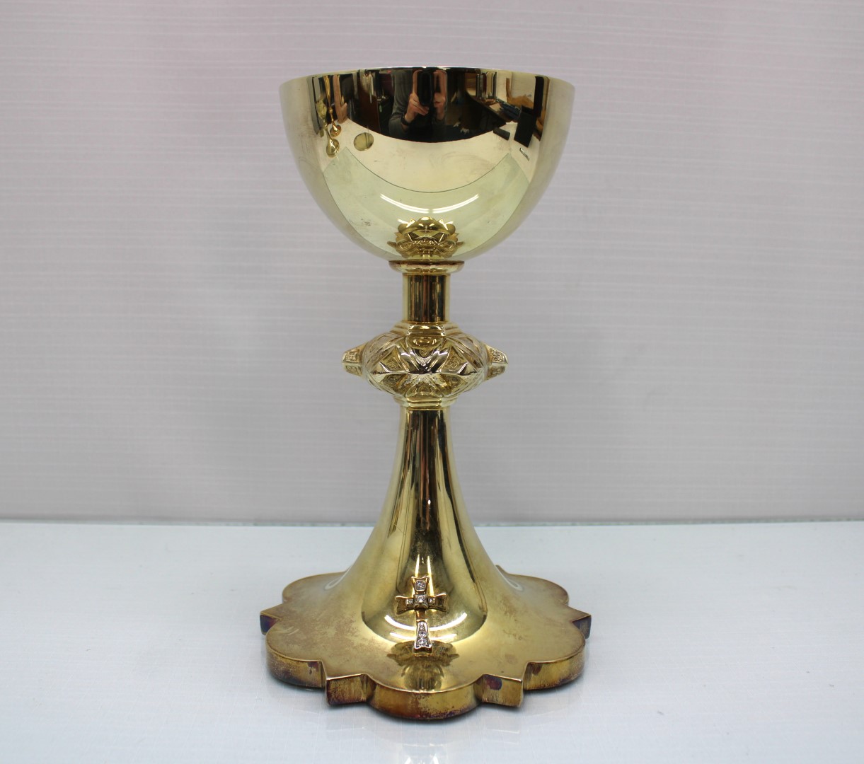 8 3/4" Sterling Cup Chalice w/ Diamond Encrusted Cross, Paten, & Case