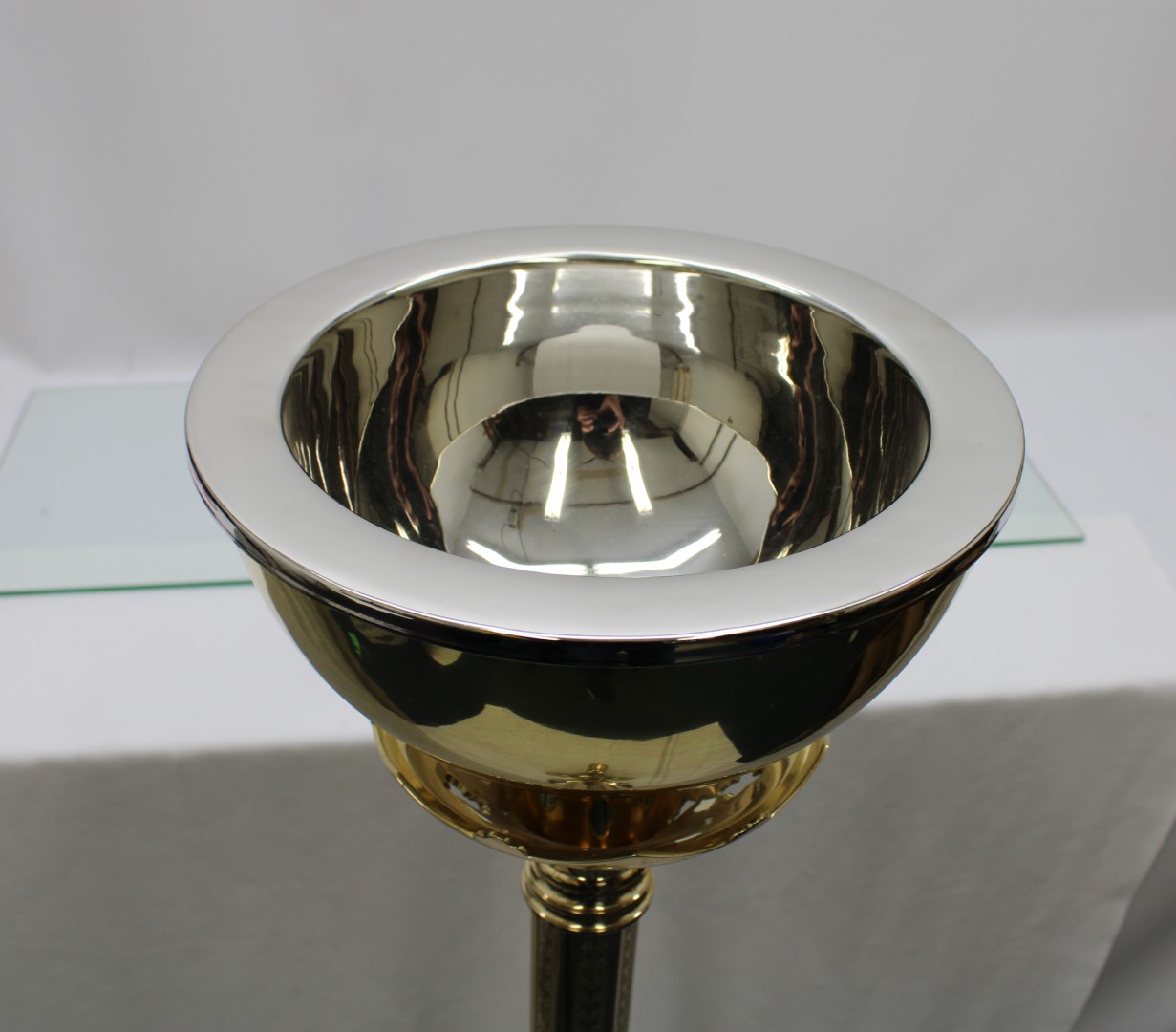44 1/2" Brass Holy Water Font w/ Removable Bowl