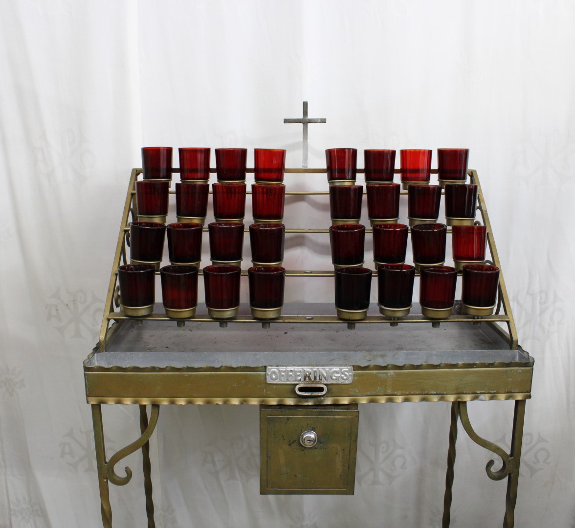 This is a previously used 36 lite votive rack. This piece measures 44" tall x 28" wide x 15" deep. **Votive glass and holders are sold separately**