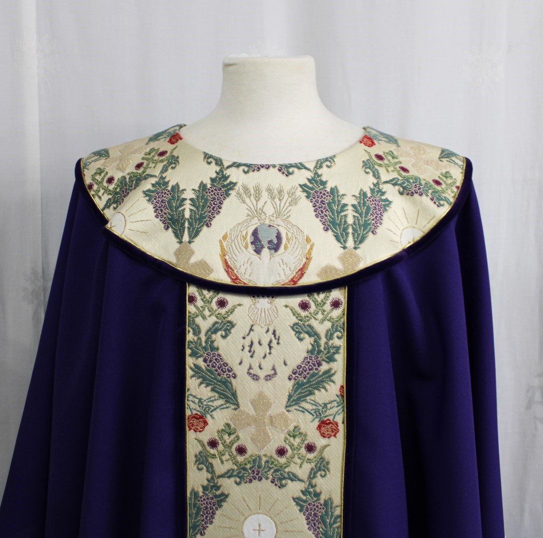 This is a NEW indigo chasuble featuring the "Tapestry of Life" banding. Includes matching stole.