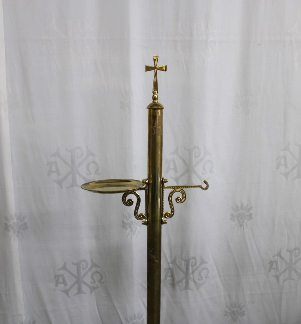 This is a previously used 55" brass censer stand with a boat rest and finial cross. It is good, usable condition, ready to go to a new home.