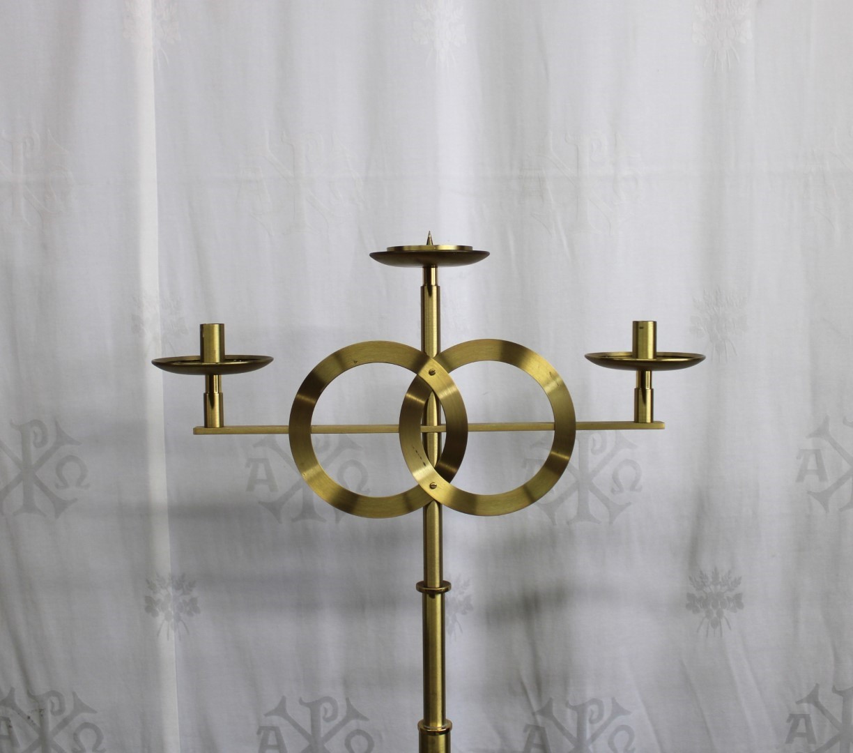 This is a previously owned brass unity candlestick, standing 54" in height.