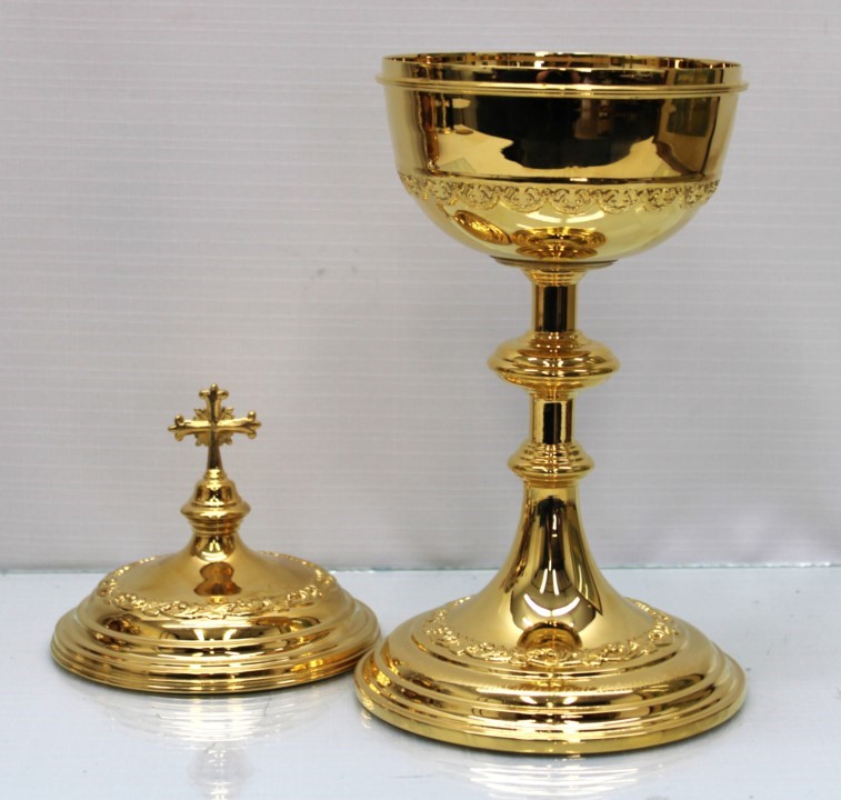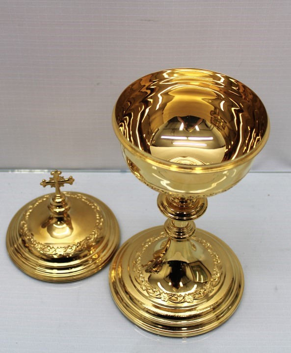 12" Gold Plated Ciborium - Laurel Embossed Calyx