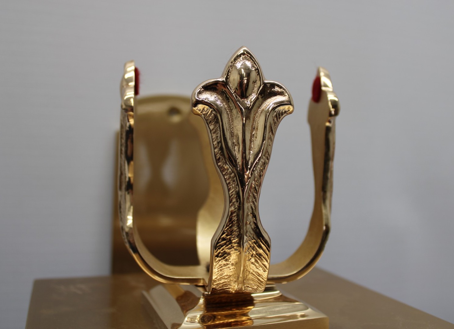 This is a previously owned Wall Mount Sanctuary candle Holder, complete with 4 prongs. It has a satin bronze and is in great condition with few minor flaws.