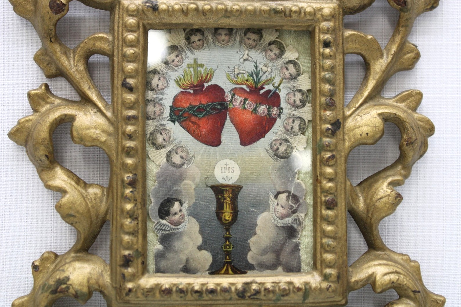 Antique Framed Immaculate/Sacred Heart Holy Card