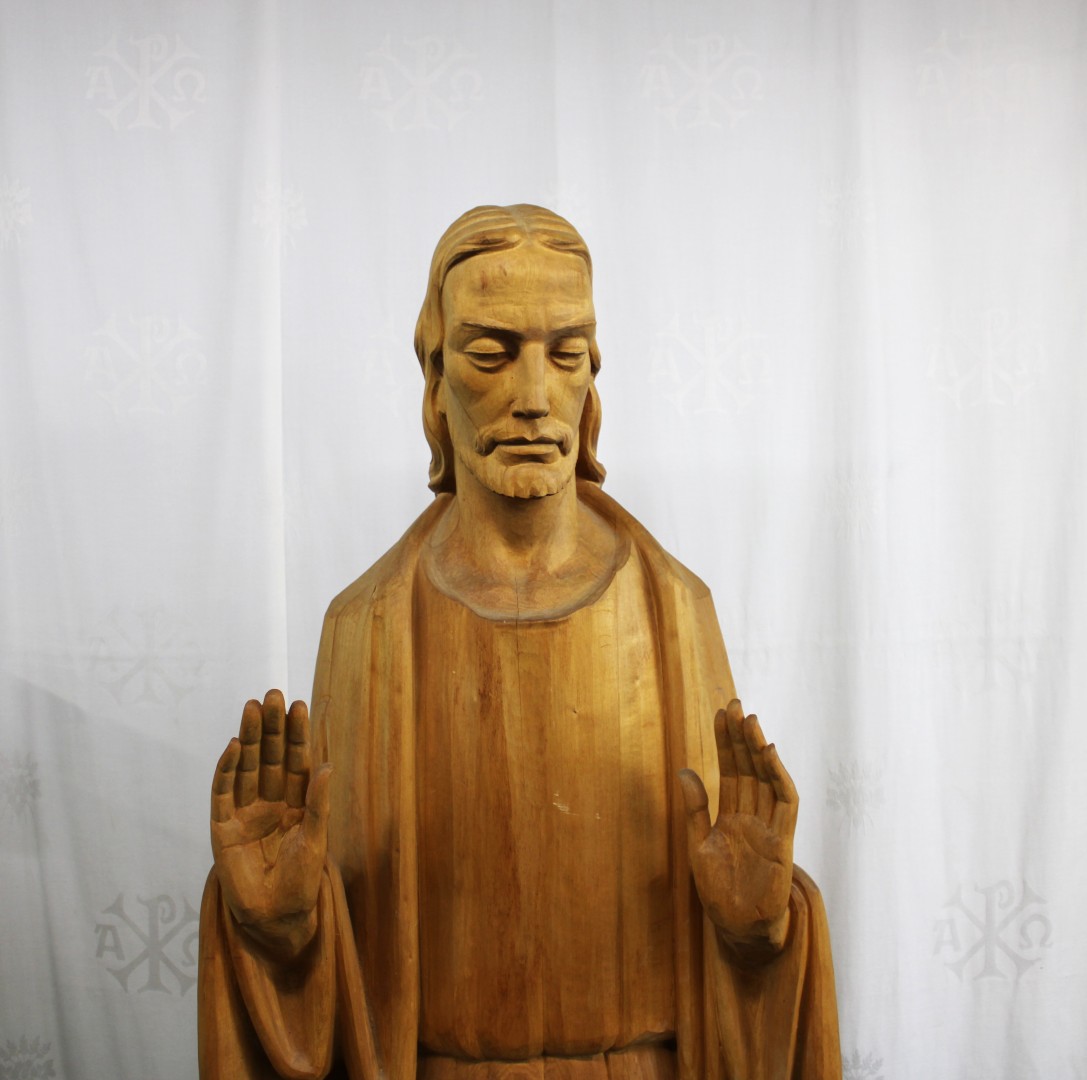 This is a previously owned 72" (6') wood carved statue of Christ. This piece is in great condition.