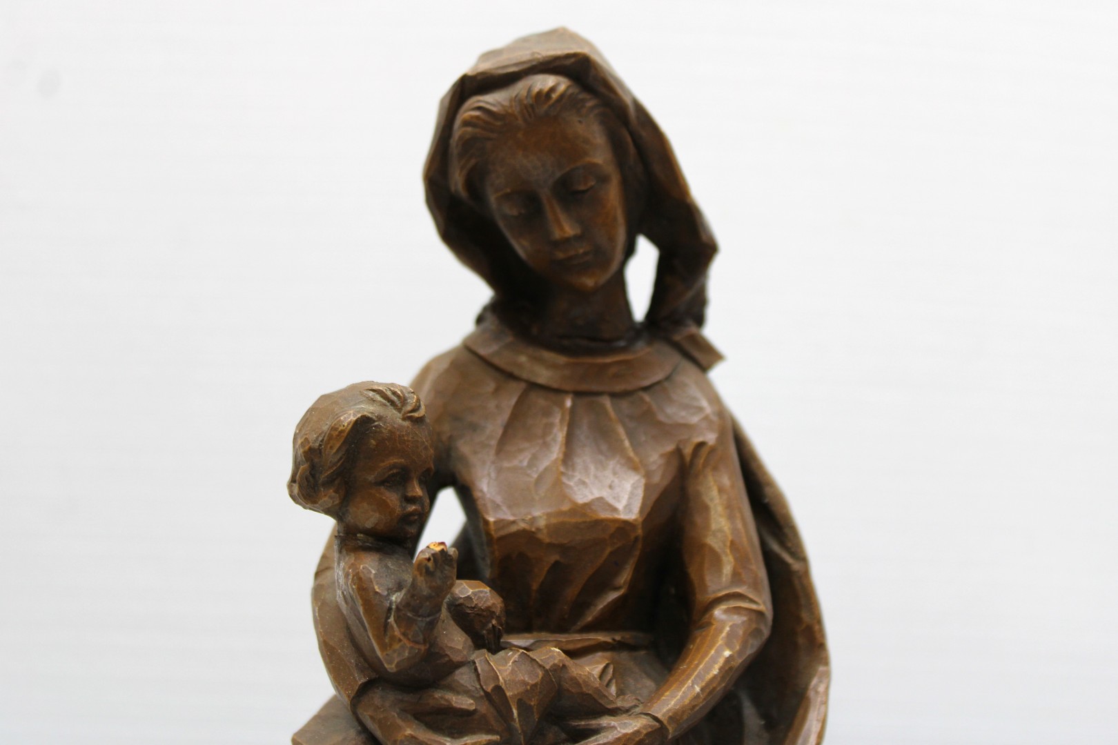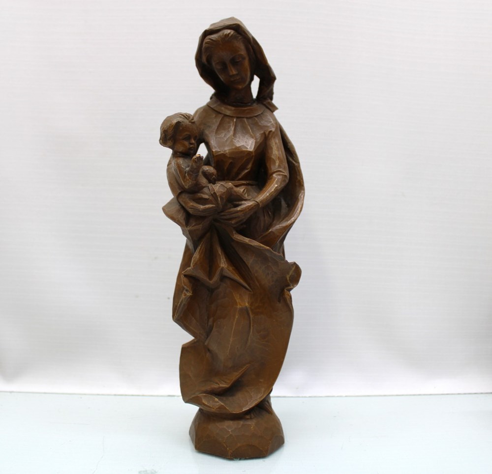 15" Wood Carved Madonna & Child