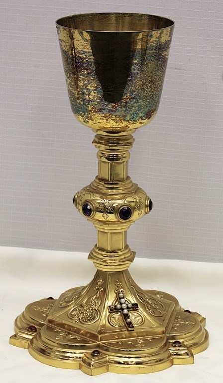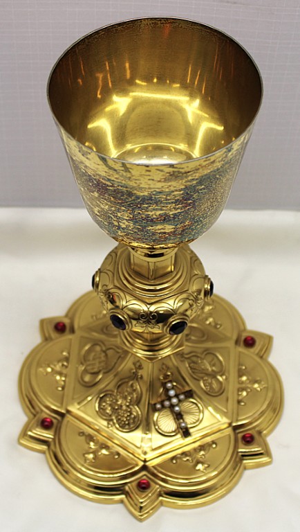 10-3/8" Sterling cup Chalice w/ Stones and Well Paten
