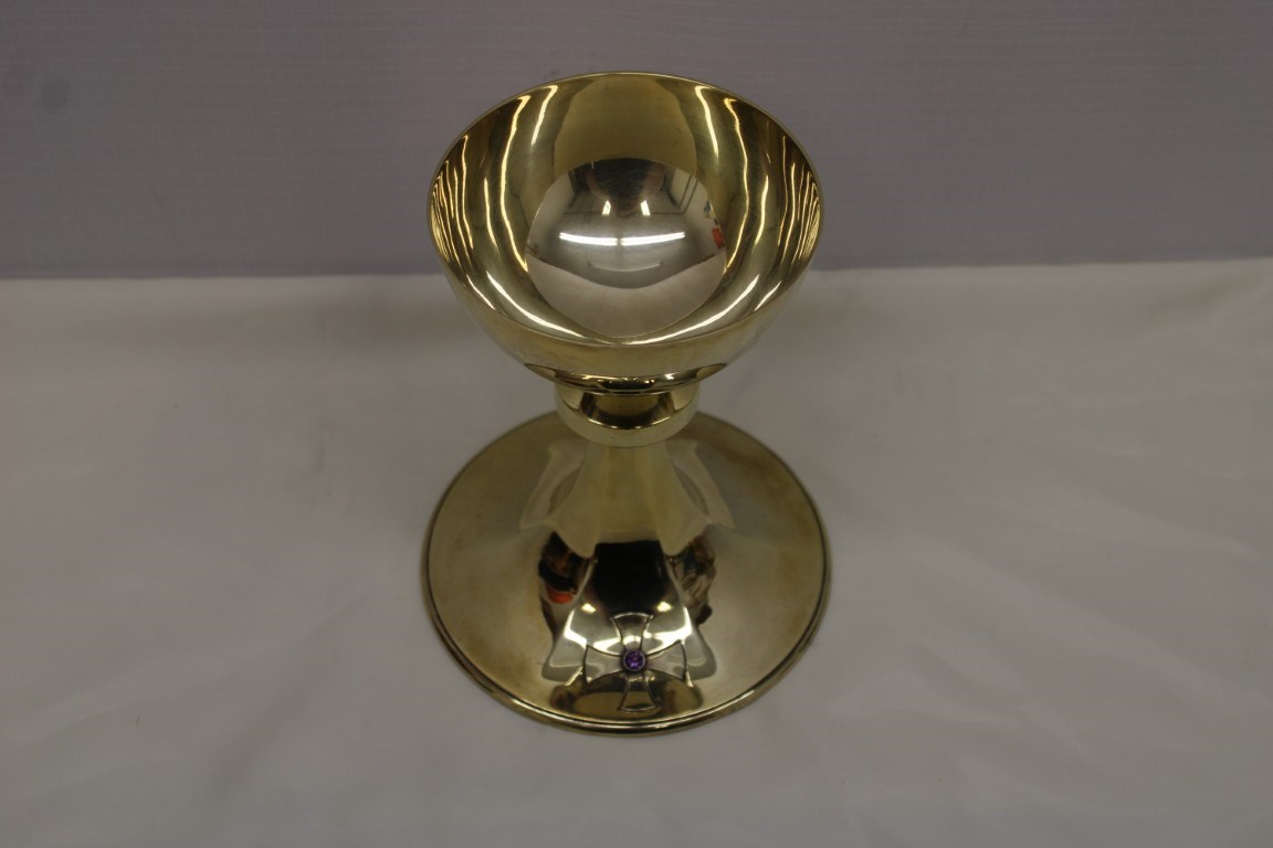 7-1/4" Sterling Chalice w/ Amethyst colored Stone and Paten