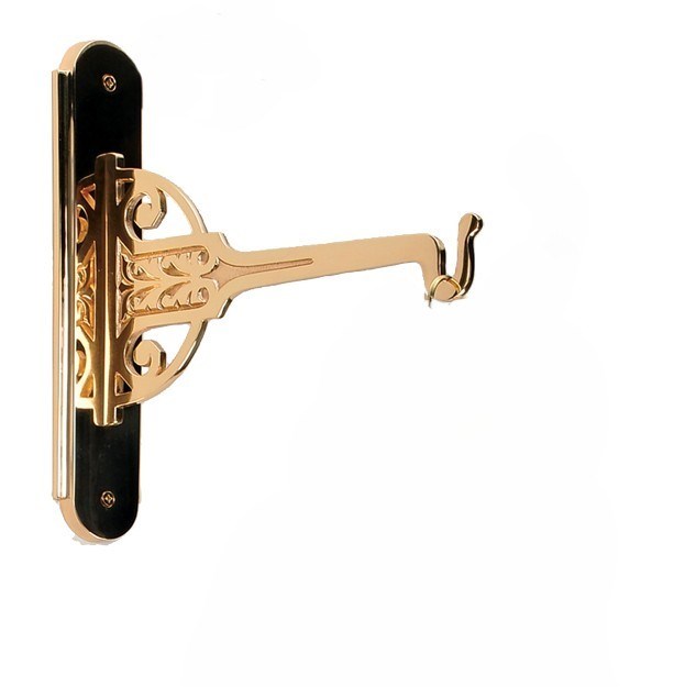 This decorative wall hook is crafted in cast textured bronze, its mounting plate adorned with graceful scroll work and finely sculpted ornamental detail. The curved arm extends outward with a smooth, dignified sweep, balancing utility with an elegant liturgical aesthetic. Its warm bronze finish and refined craftsmanship make it a fitting accent for sacristies, vesting areas, or any devotional space requiring both beauty and function.