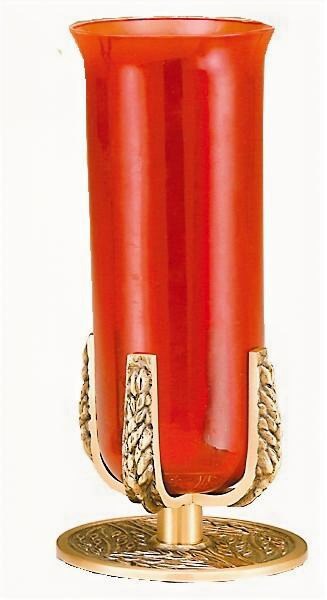 This altar sanctuary lamp is cast in textured bronze and illustrated in a brilliant high‑polish finish that enriches the ornate detailing of its sculpted supports and rounded base. The tall ruby glass vessel rises securely within the bronze framework, creating a luminous devotional focal point suited for perpetual light or sacramental presence. Its radiant finish and traditional craftsmanship offer a dignified, enduring presence for altars, chapels, and sanctuary settings.
