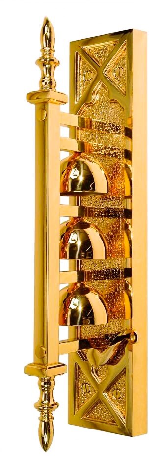 Cast from specially formulated bronze, these sanctuary bells feature a completely concealed operating mechanism that allows each chime to sound with smooth, effortless precision. Their refined frame, adorned with subtle ornamental detailing and polished bell domes, lends a dignified presence suited to both traditional and contemporary worship spaces. Built for quiet reliability and ceremonial clarity, they provide an elegant, unobtrusive means of marking sacred moments within the liturgy.