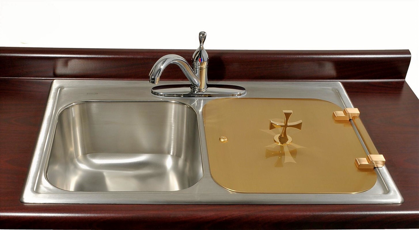 The Sacrarium features bronze covers and finials crafted in a coordinated satin and high‑polish bronze finish, protected with a water‑resistant clear coat for long‑term durability. Each hinged cover opens a full 120 degrees and includes an integrated stop to prevent the finial from contacting or marring the countertop, while the lock set allows the key to be removed in either the locked or unlocked position. Designed for versatility, these units are built from heavy‑gauge deep‑drawn stainless steel, include all necessary counter‑mounting hardware, and are suitable for retrofitting into existing sacristy cabinetry.
