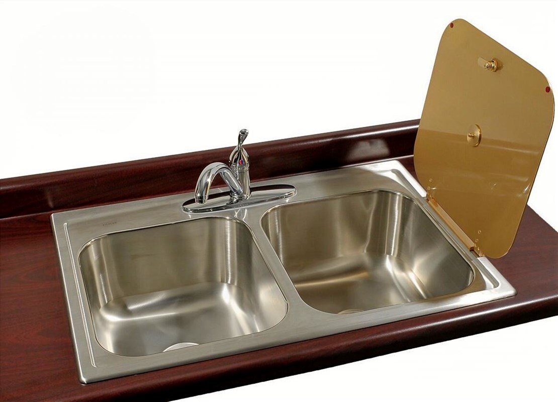- Fits Standard 3 Hole Faucet Openings, Bowls have a 3-1/2" dia. Drain Opening.