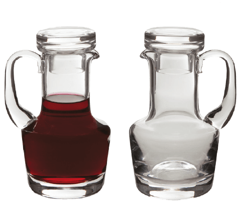 These clear glass cruets present a graceful, traditional form, each rising from a broad, stable base into a gently tapered neck with an easy‑to‑hold handle. Their fitted lids and smooth, transparent walls offer a clean, dignified way to present wine and water for the liturgy. Balanced, practical, and refined, they bring a quiet elegance to the credence table and the preparation of the gifts.